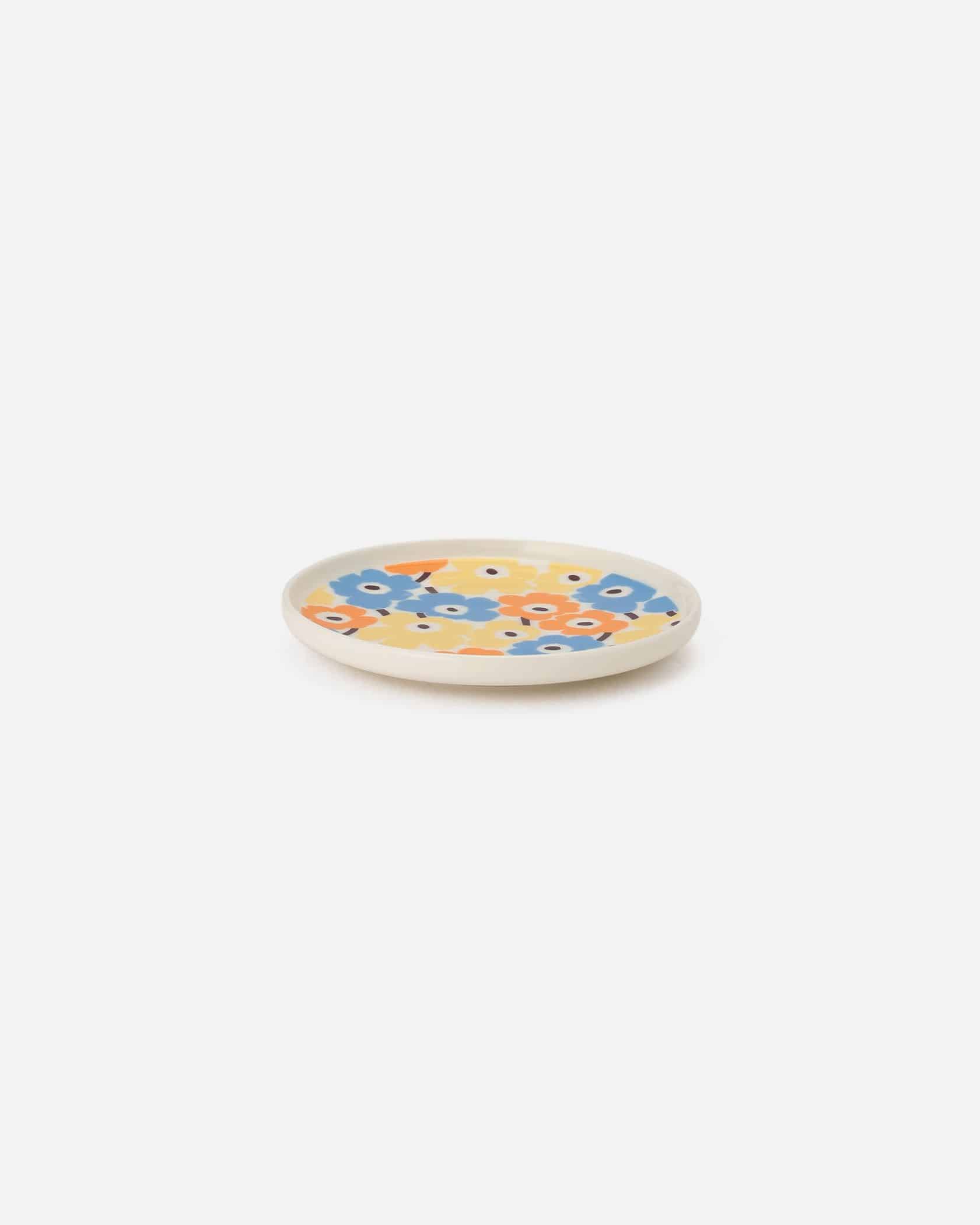 ライトイエロー×ライトブルーの明るい配色でUnikko柄を表現したプレート。食卓が華やぎ、普段使いにもホームパーティなどのイベントにもぴったりなデザインです。13.5cmの少し小さめのサイズは、スイーツの盛り付けや取り皿として重宝します。縁に適度な高さがあり、汁気のある料理にも対応が可能です。