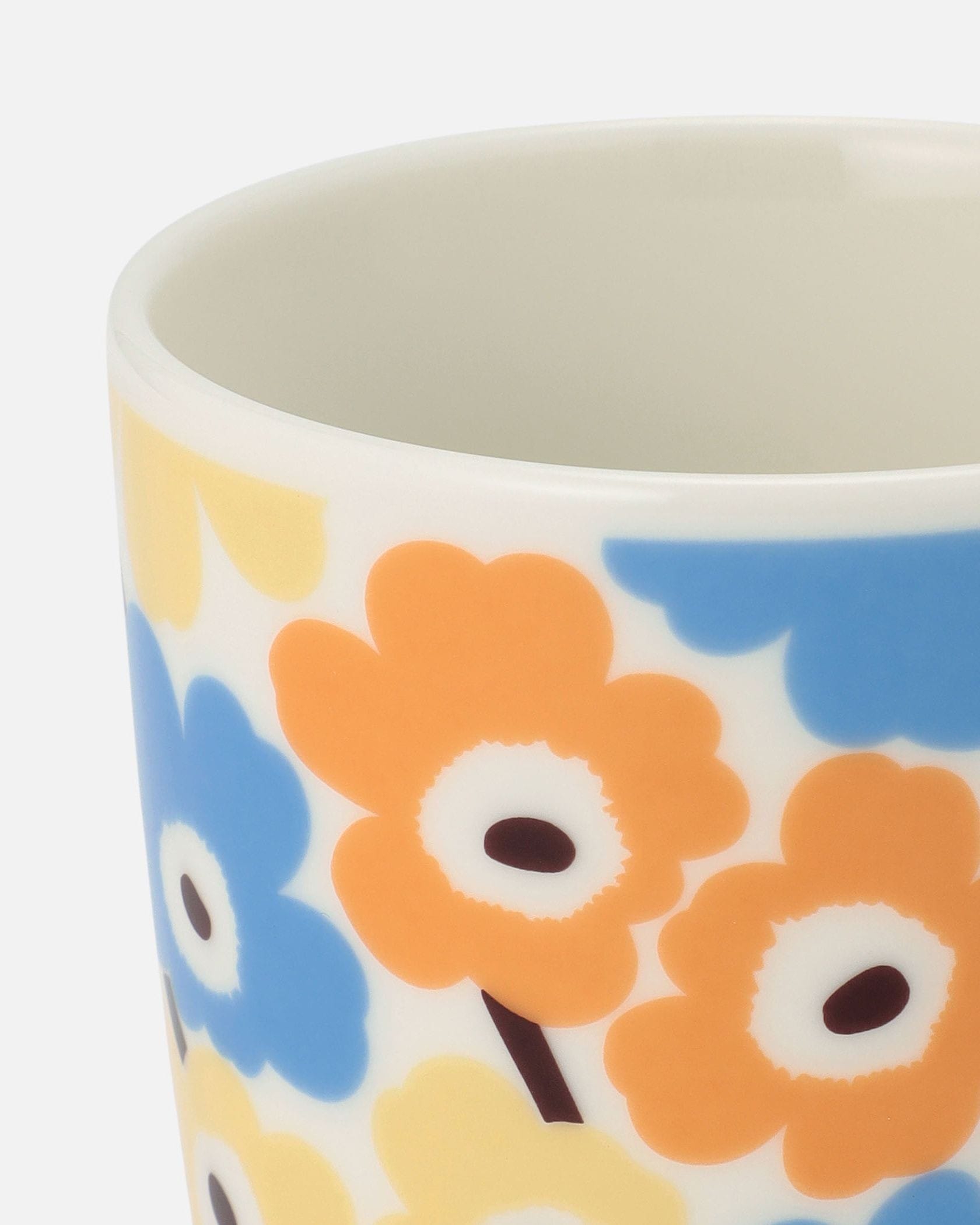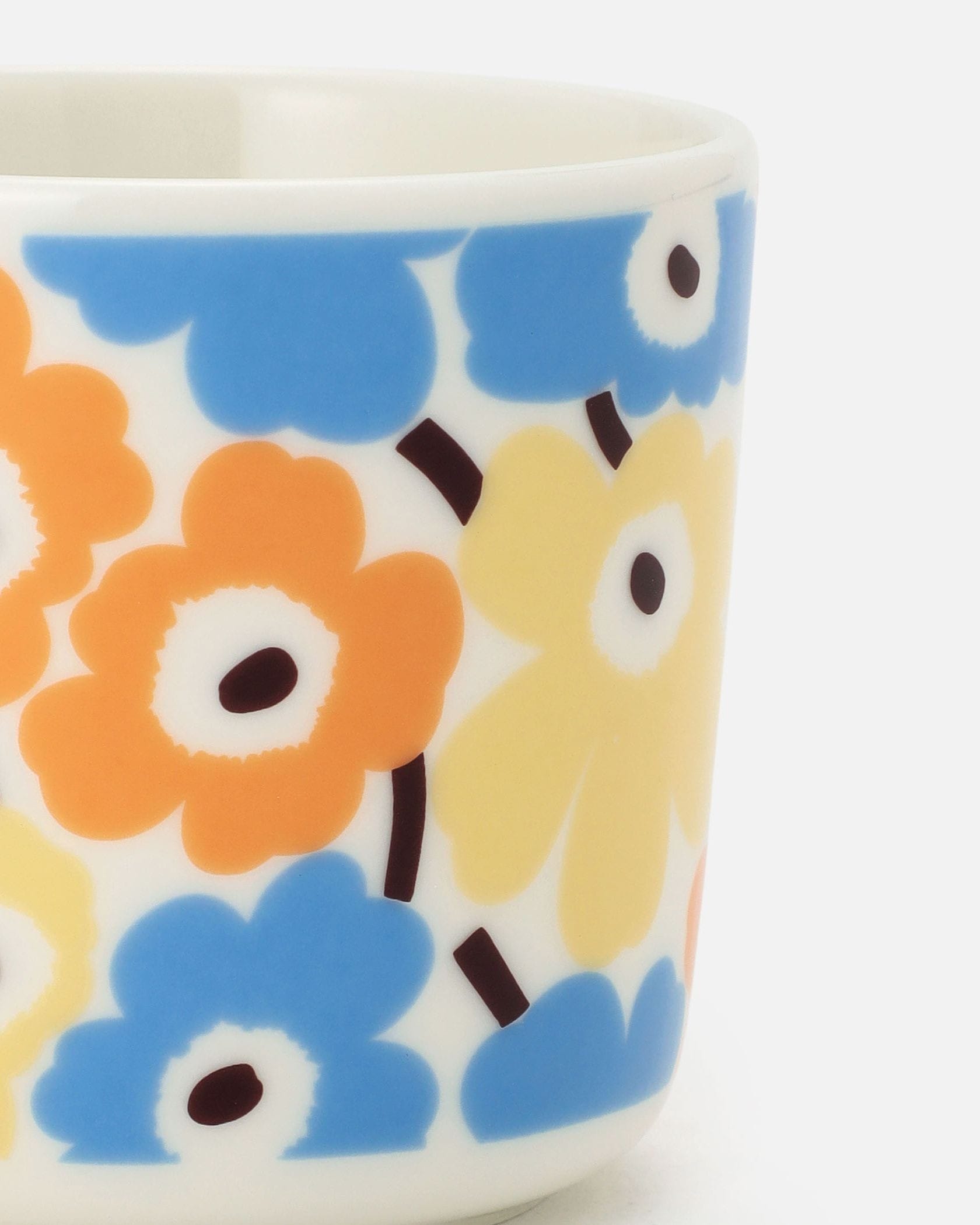 可憐で愛らしいUnikko柄のコーヒーカップセット。ライトイエロー×ライトブルーの明るい配色でテーブルが華やぎます。ハンドルのないすっきりとしたシルエットに、手になじみが良い小ぶりのサイズ感。小鉢感覚で料理の盛り付けにお使いいただいても素敵です。同じデザインのプレートもございます。