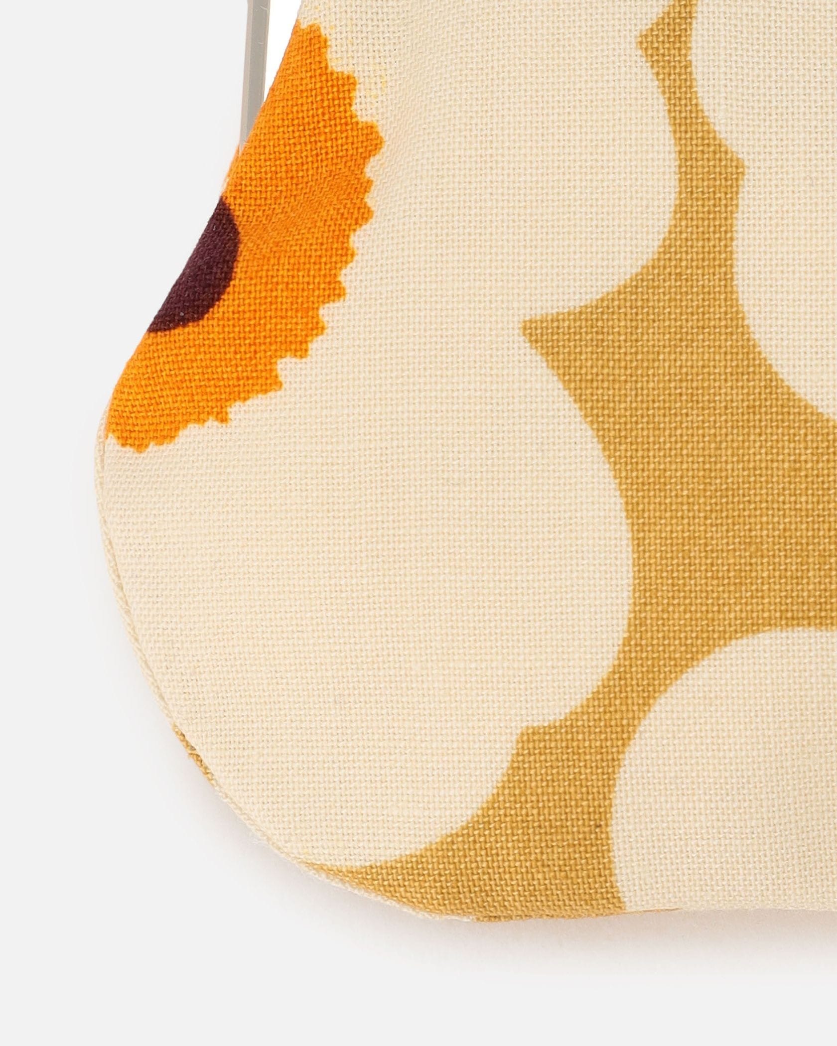 長さのある小物の収納にも便利な、がま口タイプのUnikko柄ポーチ。やさしい手触りのコットン素材とエッジの効いたデザインで、毎日バッグに入れて持ち歩きたくなるアイテムです。