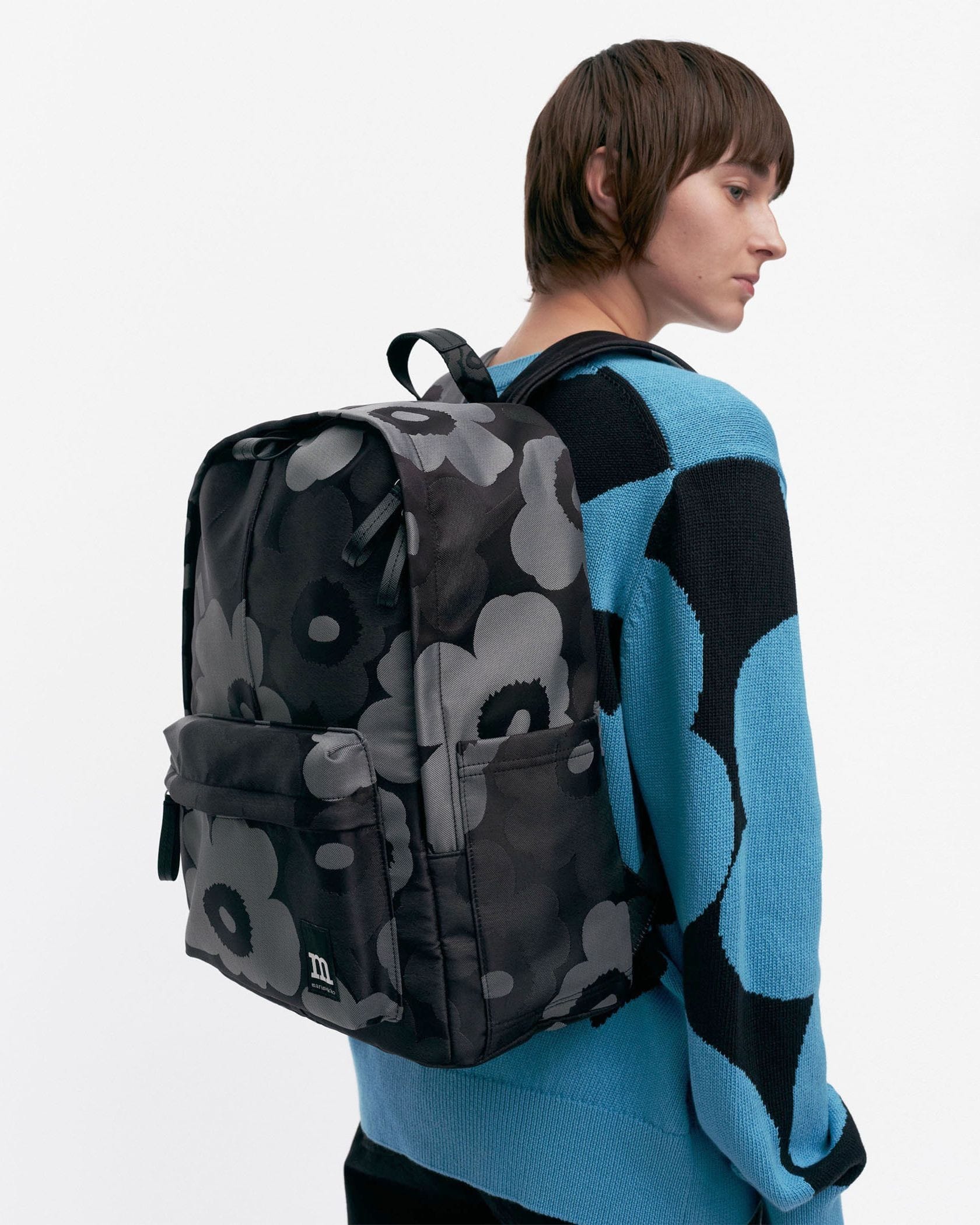 「花」を意味するUnikko(ウニッコ)柄は、Maija Isolaがデザインしました。スポーティーなデザインと実用性を兼ね備えた、ジップトップ仕様のバックパックです。ロゴ入りのジャガードテープがアクセントに。すぐに取り出したい小物の収納に便利なアウトポケットが充実した機能性が魅力です。