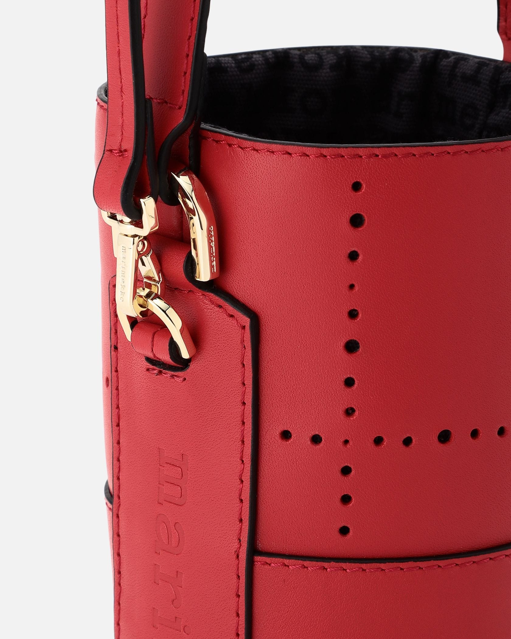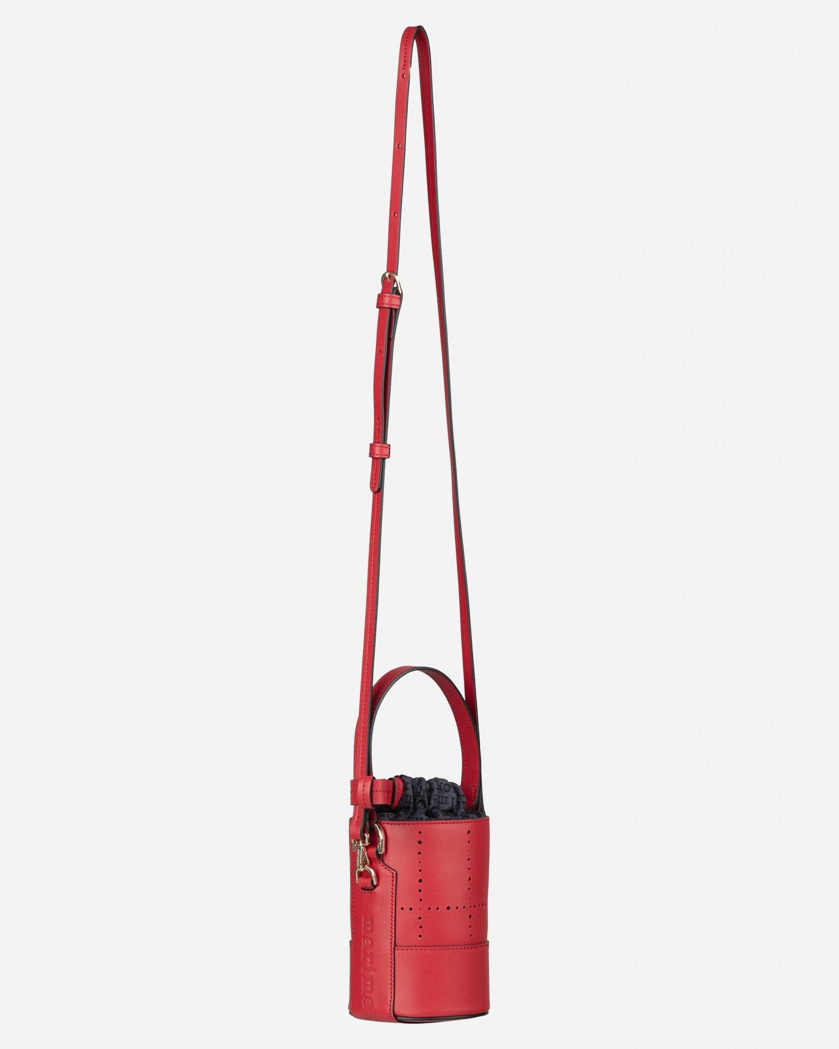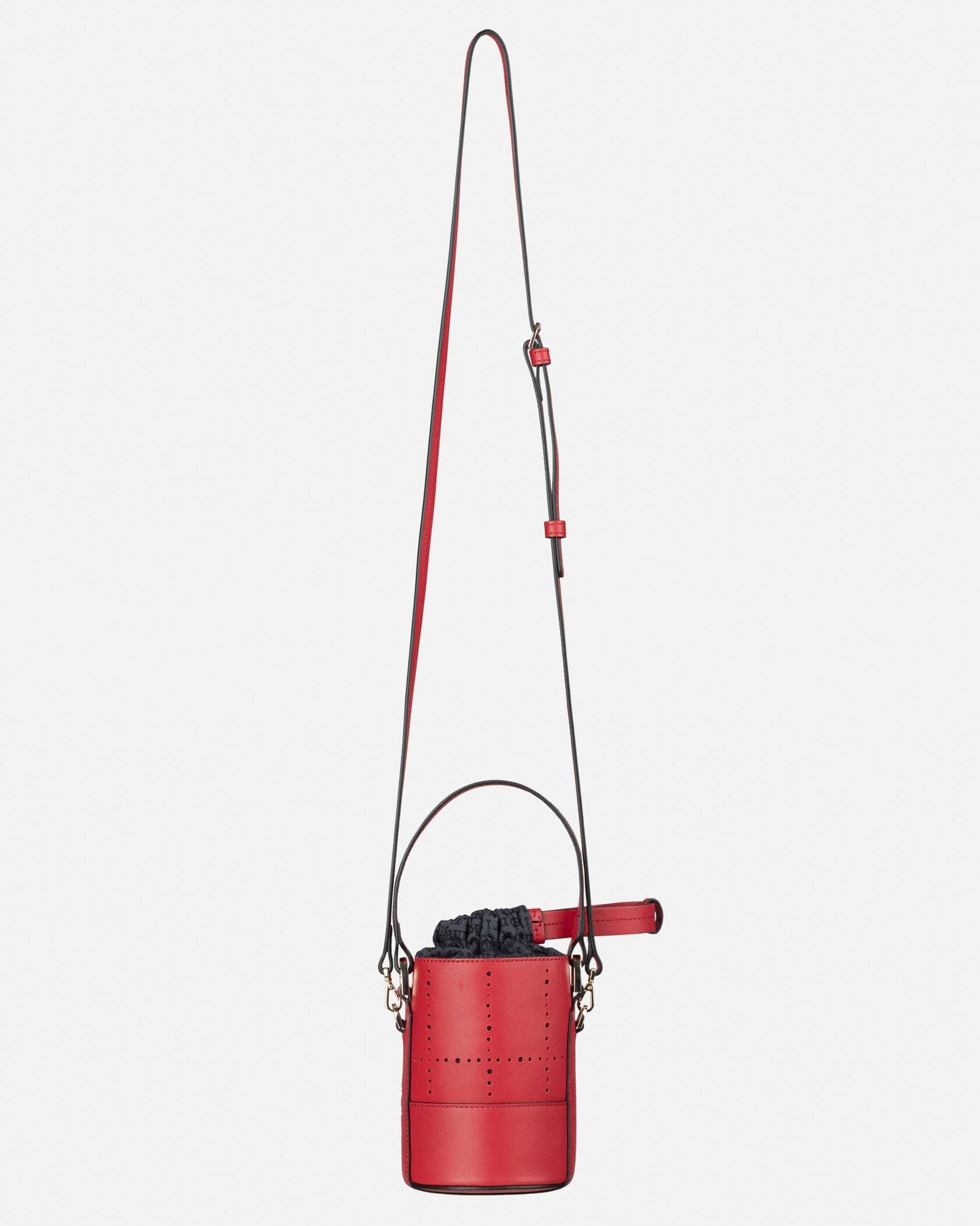 アクセサリー感覚で取り入れたい、可愛らしいミニサイズのバケットバッグ。ショルダーストラップ付きの2WAY仕様です。上質なレザー素材で、煉瓦を意味するテキスタイル「Tiiliskivi」をモチーフにデザイン。間口は巾着タイプで中身が見えず、安心してお使いいただけます。