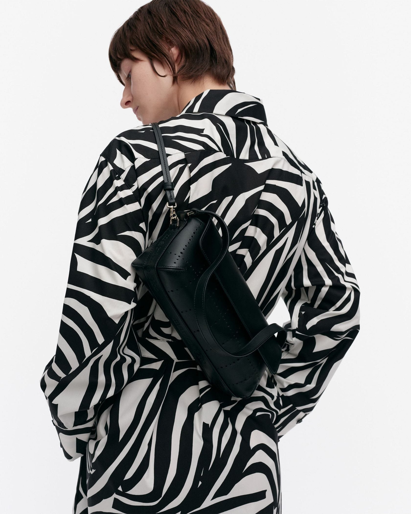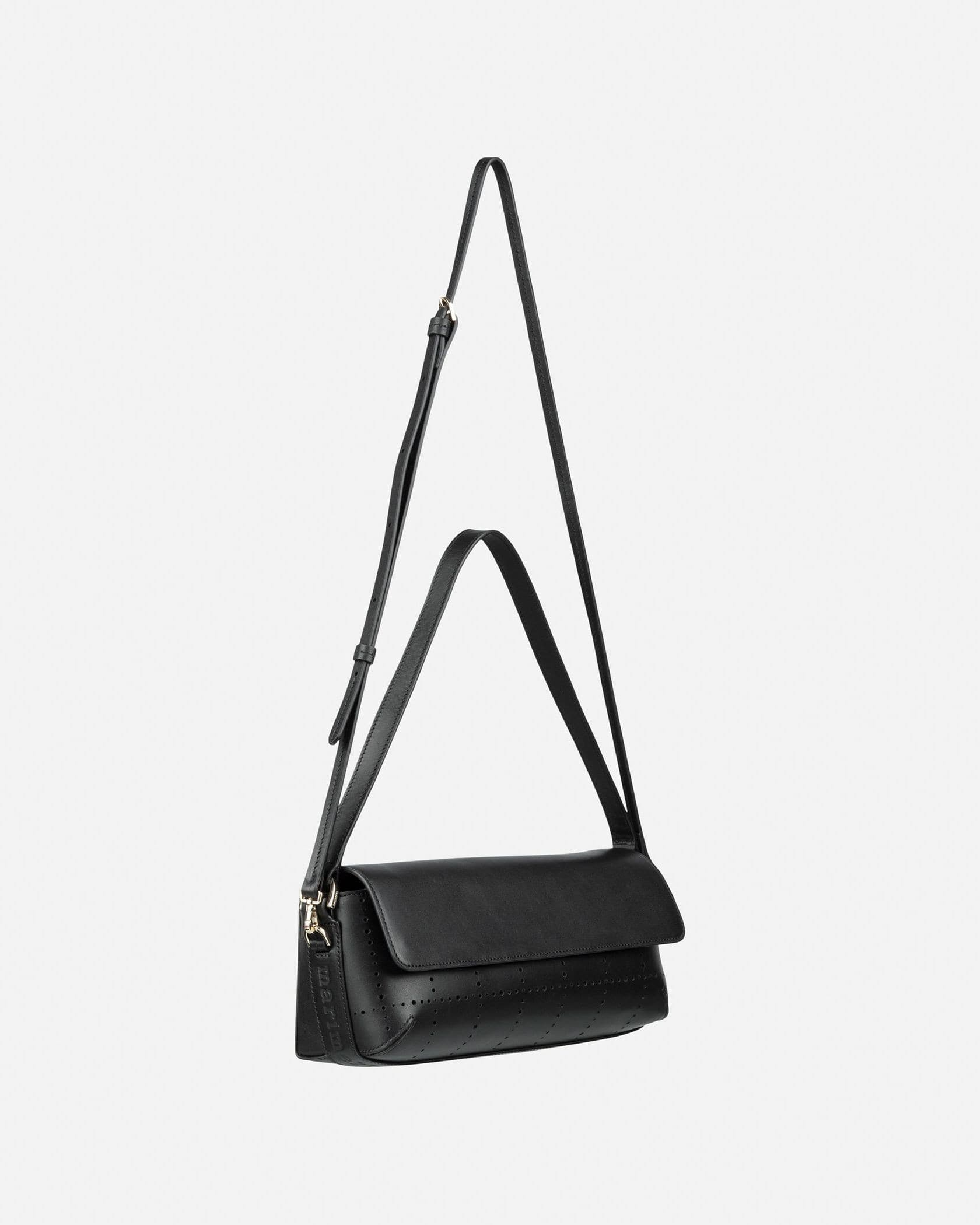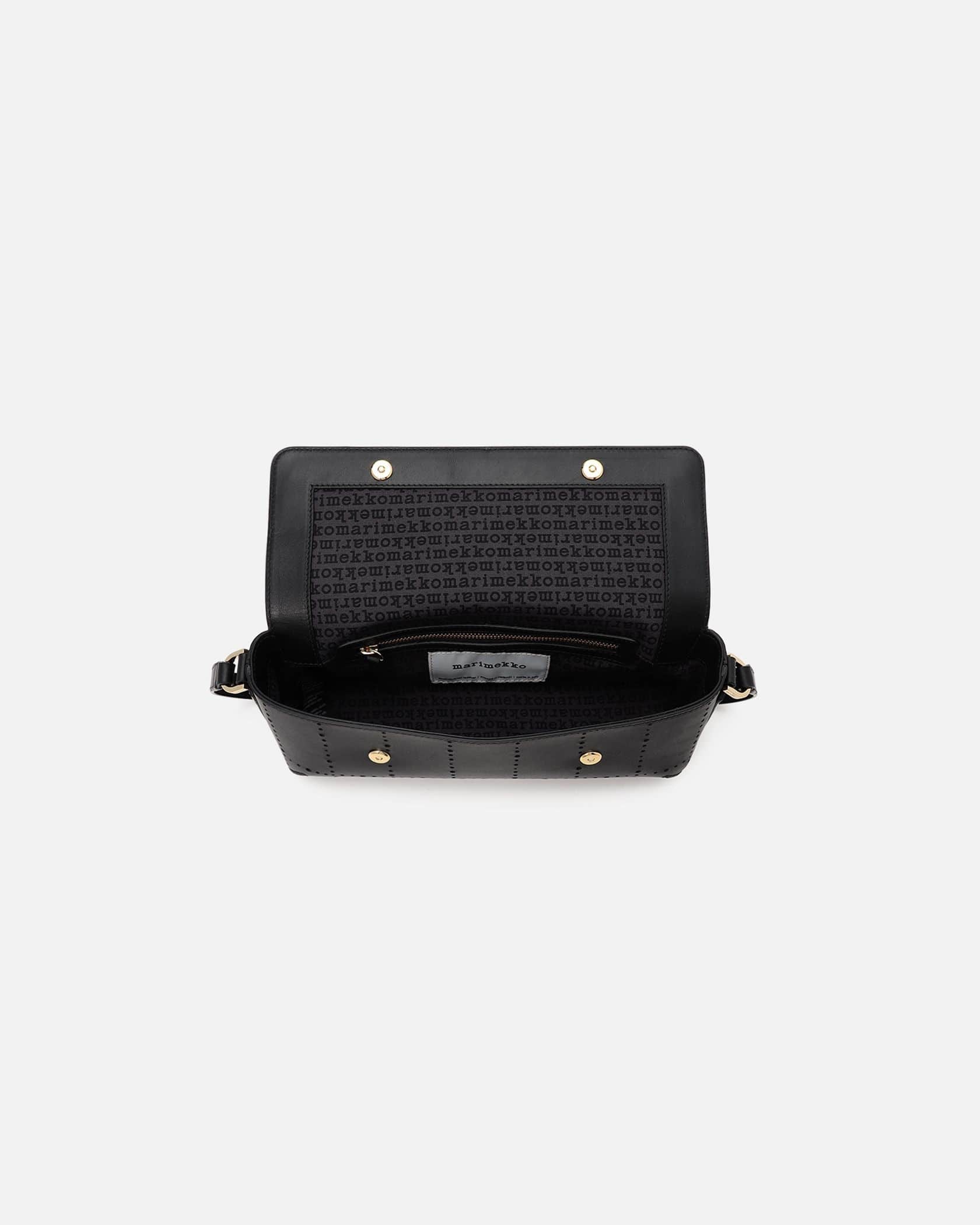 横長フォルムが印象的なフラップバッグ。ハンドルとショルダーストラップが付いた、便利な2WAY仕様となります。煉瓦を意味するテキスタイル「Tiiliskivi」をモチーフにしていて、素材には上質なレザーを採用しました。マチ幅があるため、見た目以上の収納力です。オンオフ兼用で使えて、合わせるスタイルを問いません。