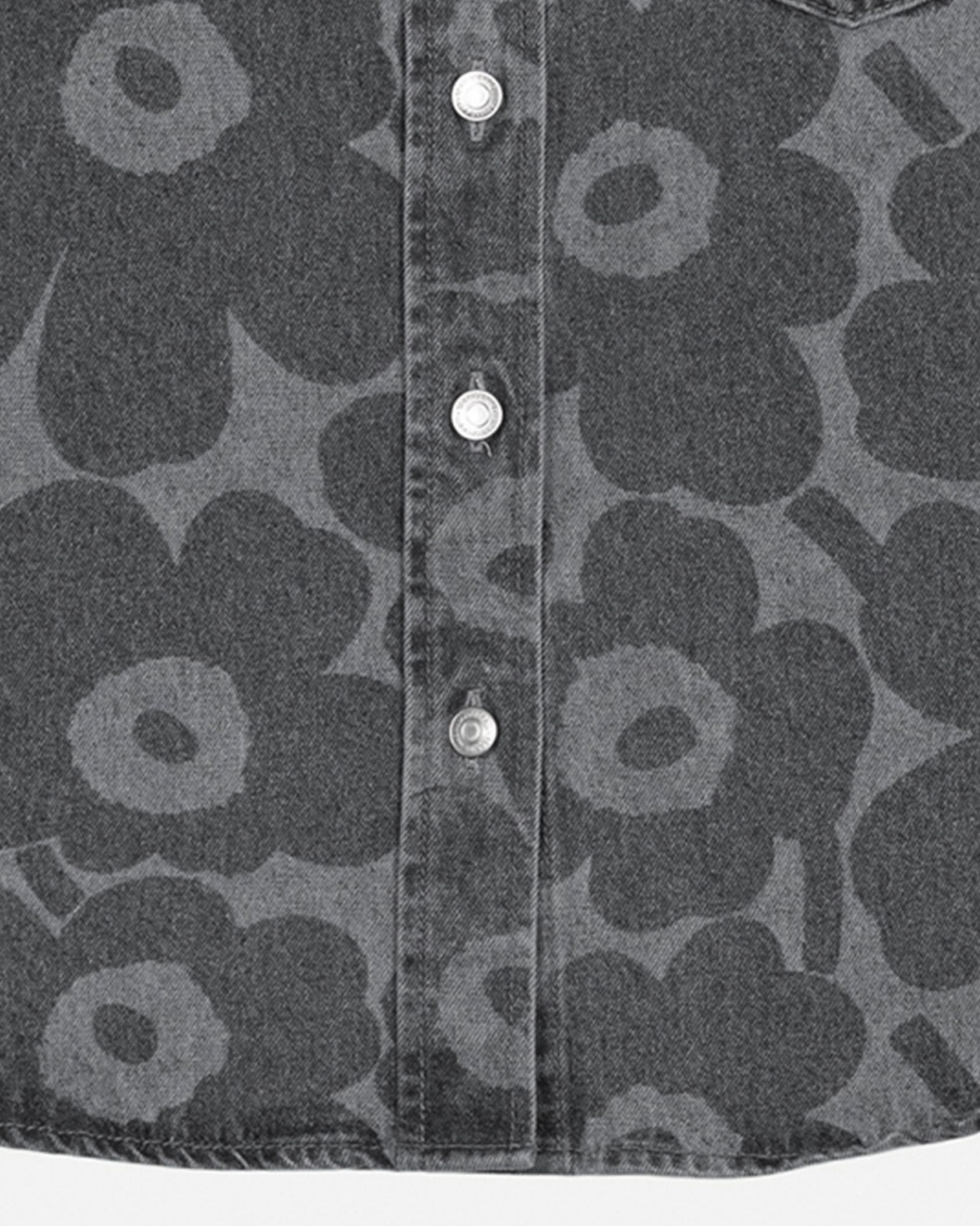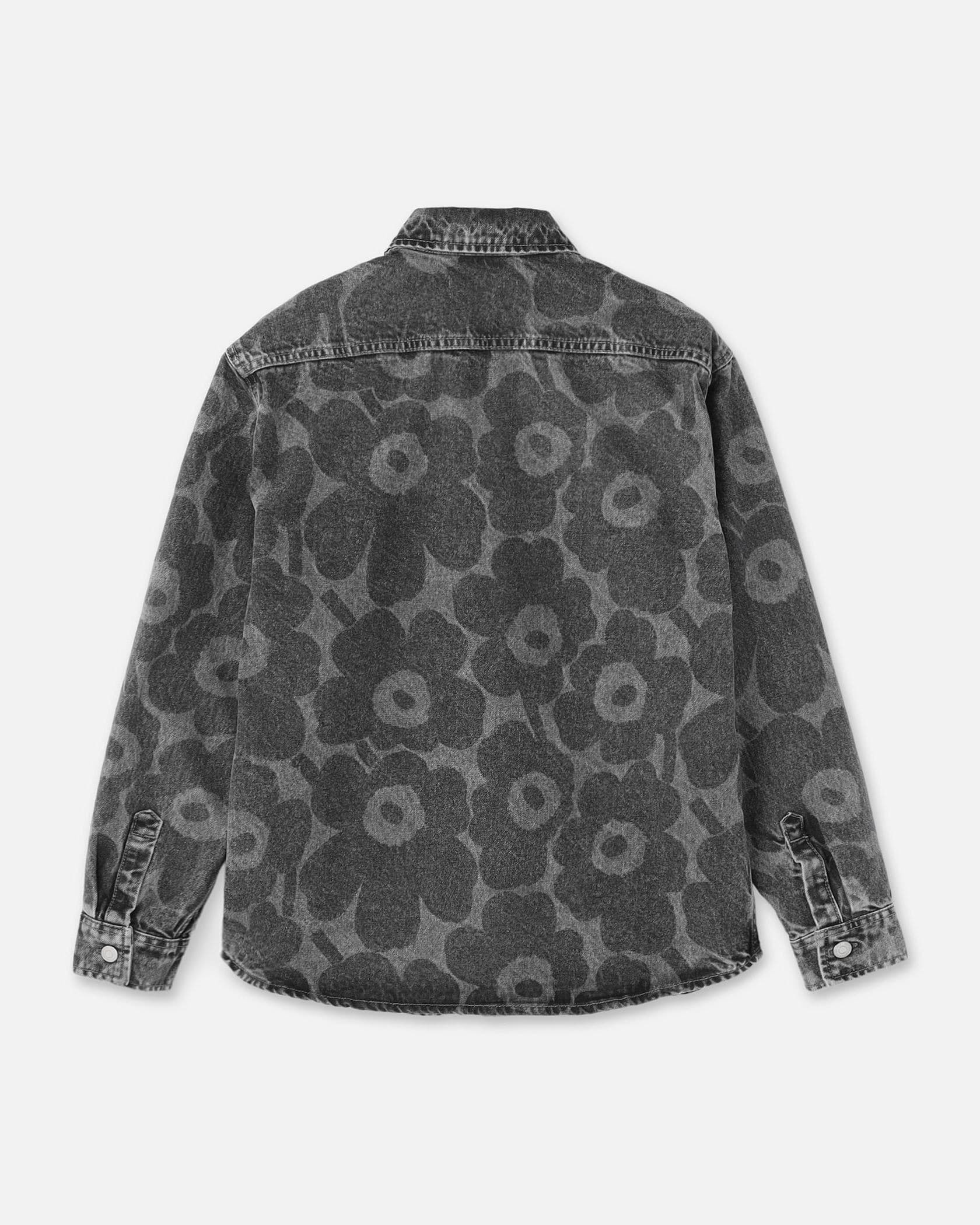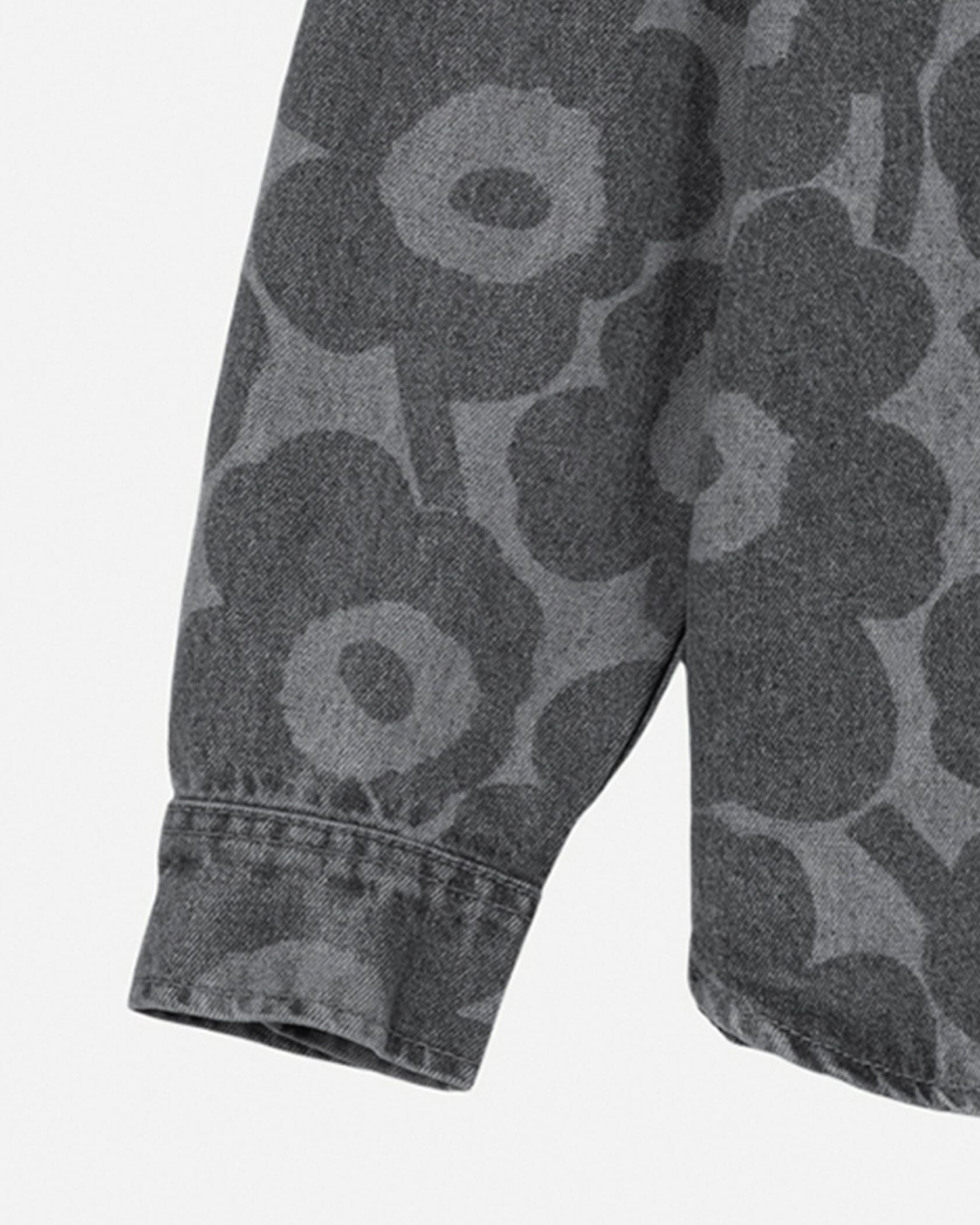 色の濃淡で「Unikko」柄を表現した、デニム素材の長袖シャツ。製品洗いによる、ナチュラルな風合いが魅力です。コットン100%素材でオールシーズン着用できます。シンプルに一枚で着るのはもちろん、カットソーやワンピースなどの上に軽く羽織れるのも魅力です。同素材のパンツとセットアップで取り入れると、モダンなスタイルが完成。