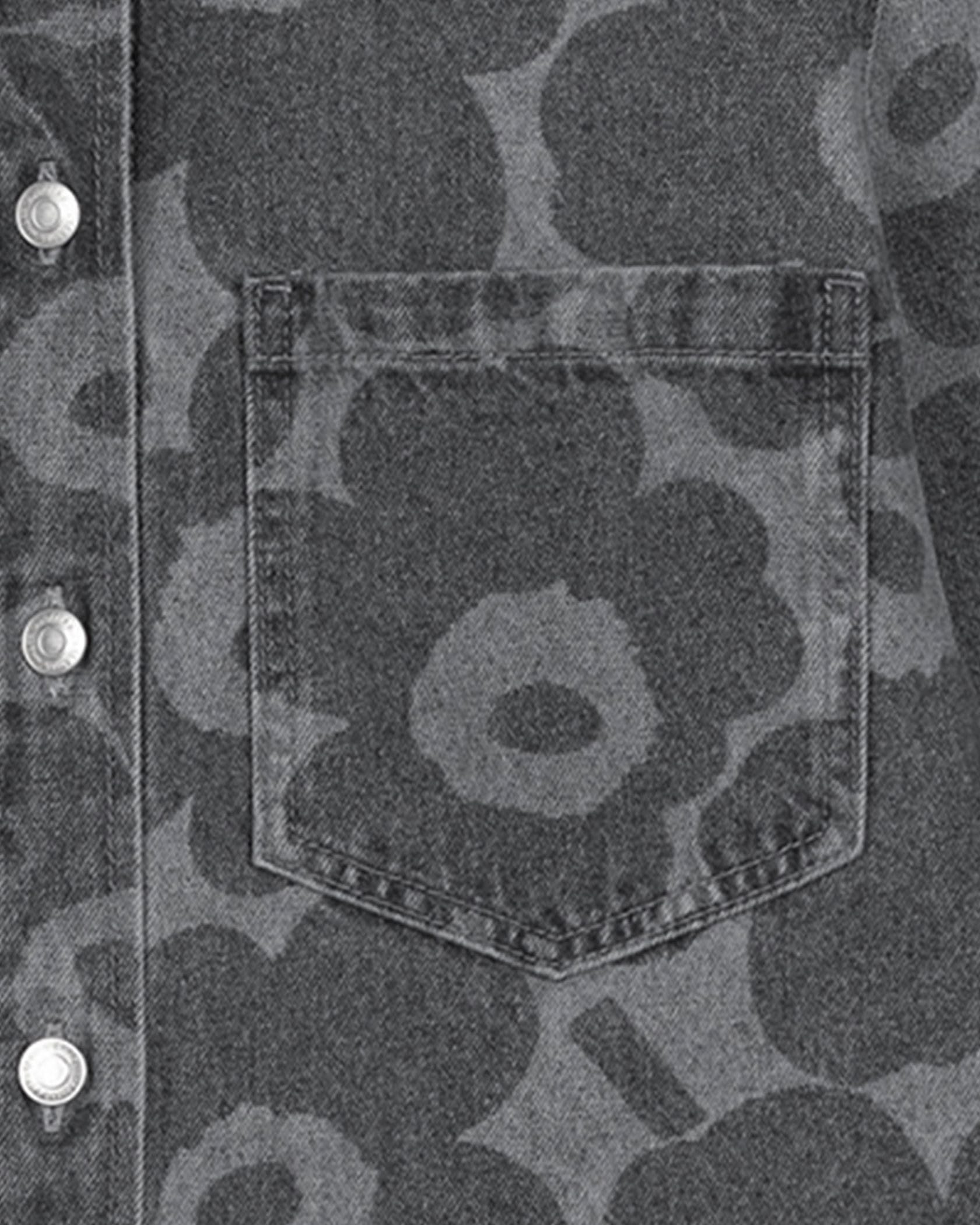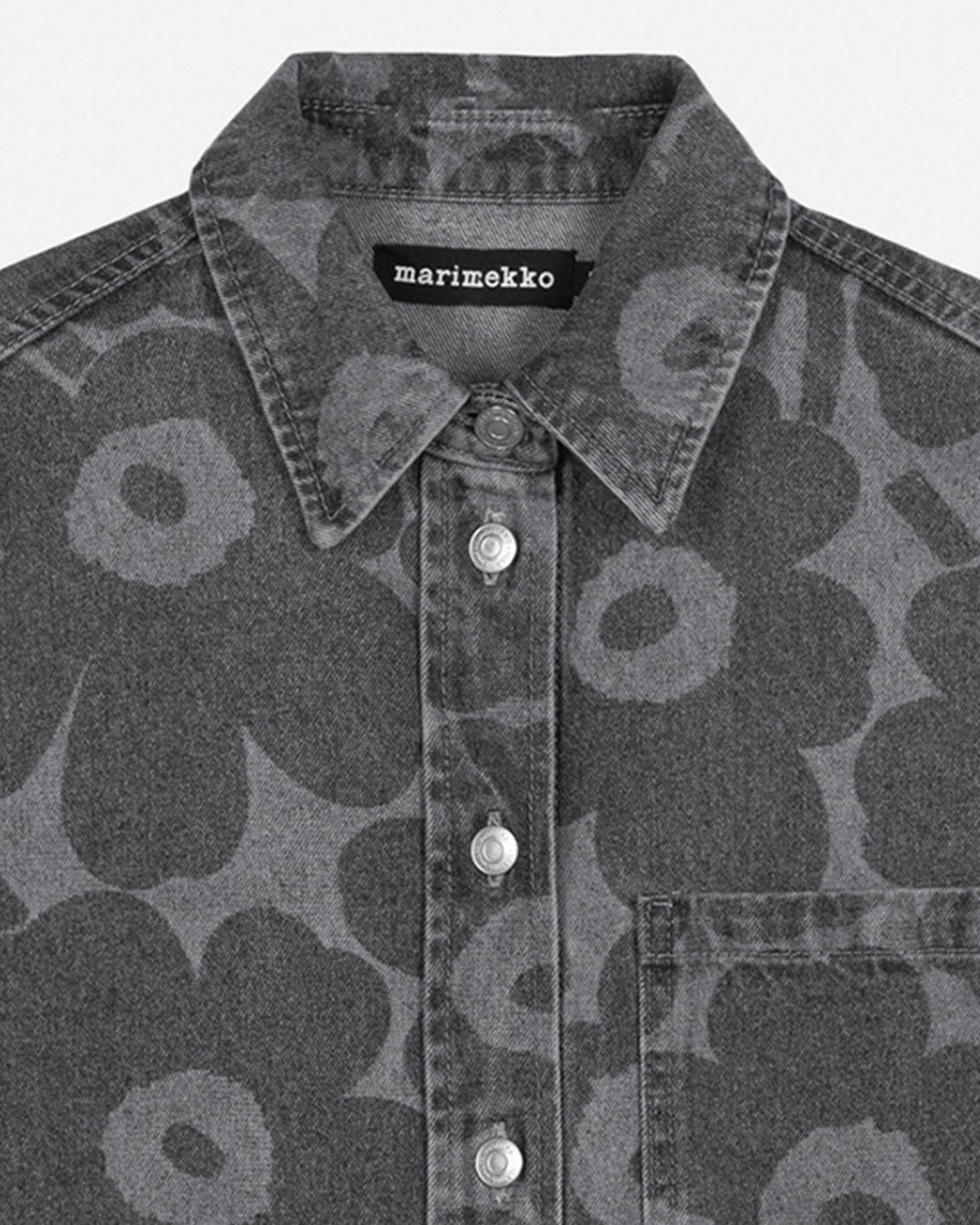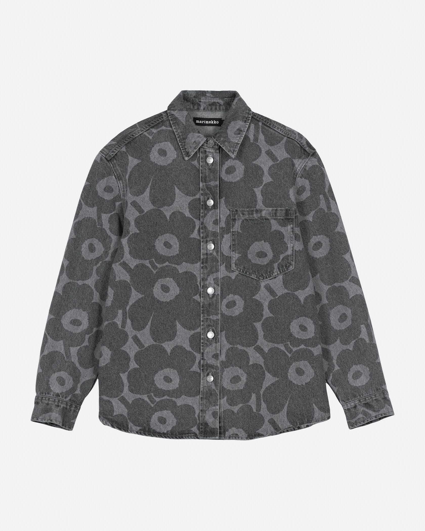 色の濃淡で「Unikko」柄を表現した、デニム素材の長袖シャツ。製品洗いによる、ナチュラルな風合いが魅力です。コットン100%素材でオールシーズン着用できます。シンプルに一枚で着るのはもちろん、カットソーやワンピースなどの上に軽く羽織れるのも魅力です。同素材のパンツとセットアップで取り入れると、モダンなスタイルが完成。
