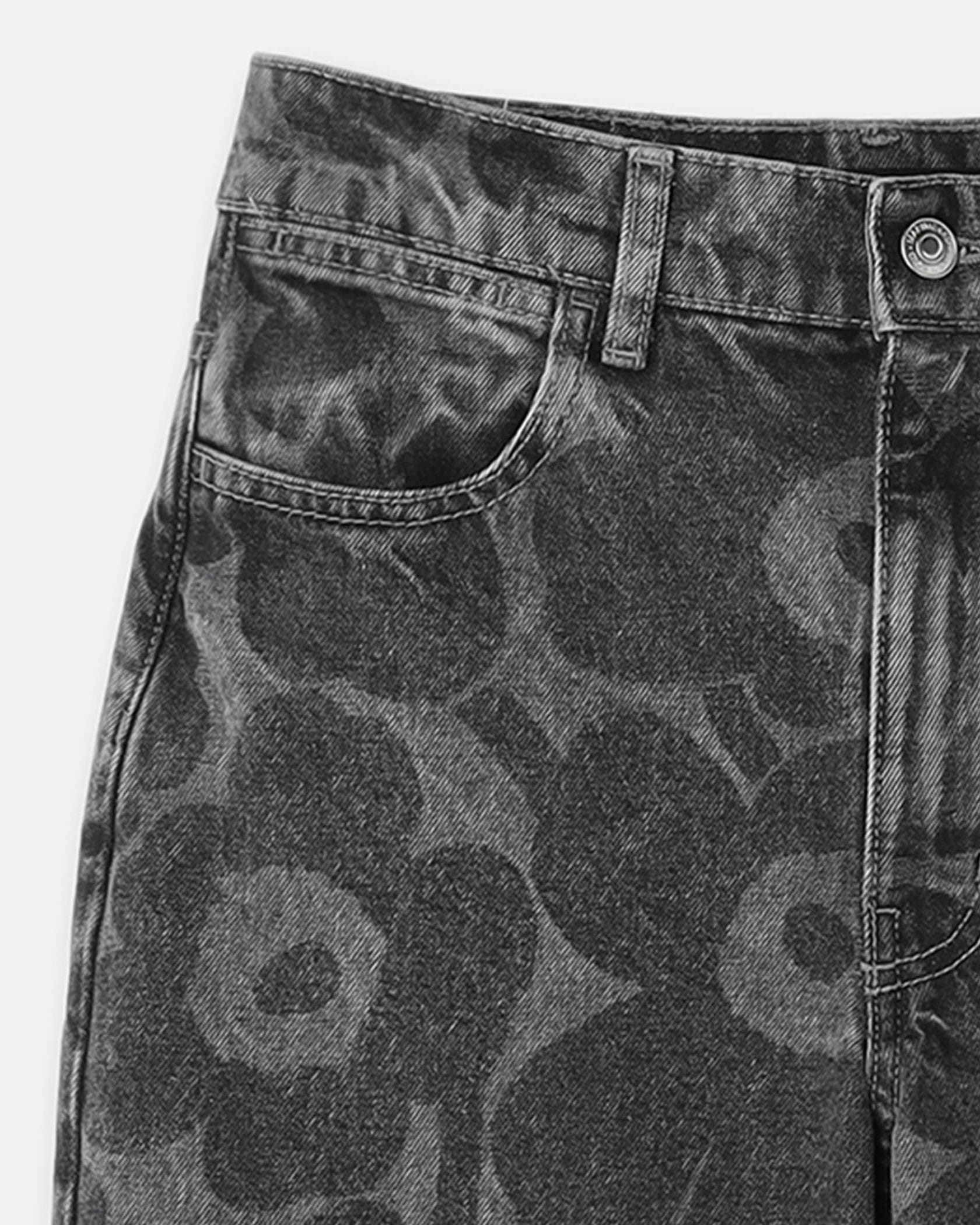 スタイリングに華を添える、「Unikko」柄のデニムパンツです。ヒップまわりにゆとりがあり、裾に向かてテーパードさせた、スラウチーラインで仕上げています。脚のラインを拾いにくく、もたついて見えないのが特徴です。無地のTシャツやタンクトップでヘルシーに着こなすのがおすすめ。同素材のシャツとセットアップでも着用できます。