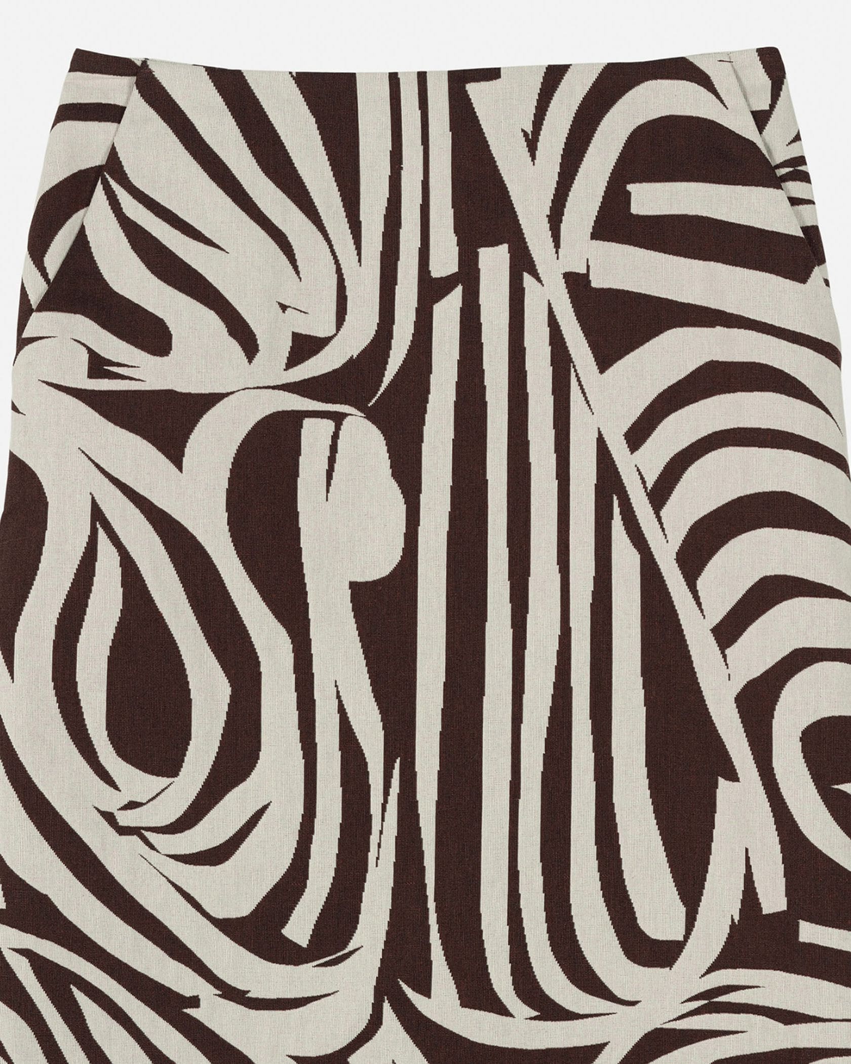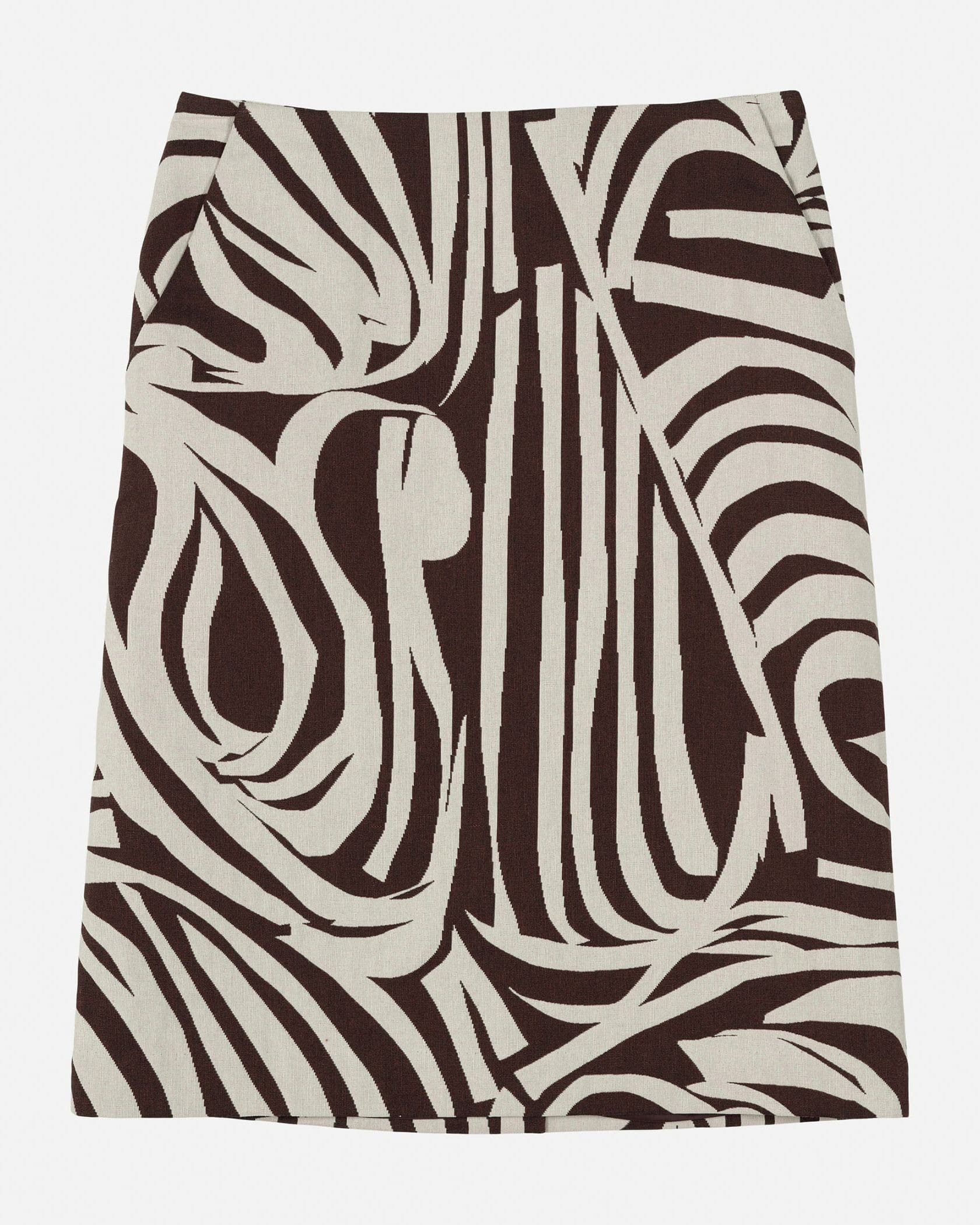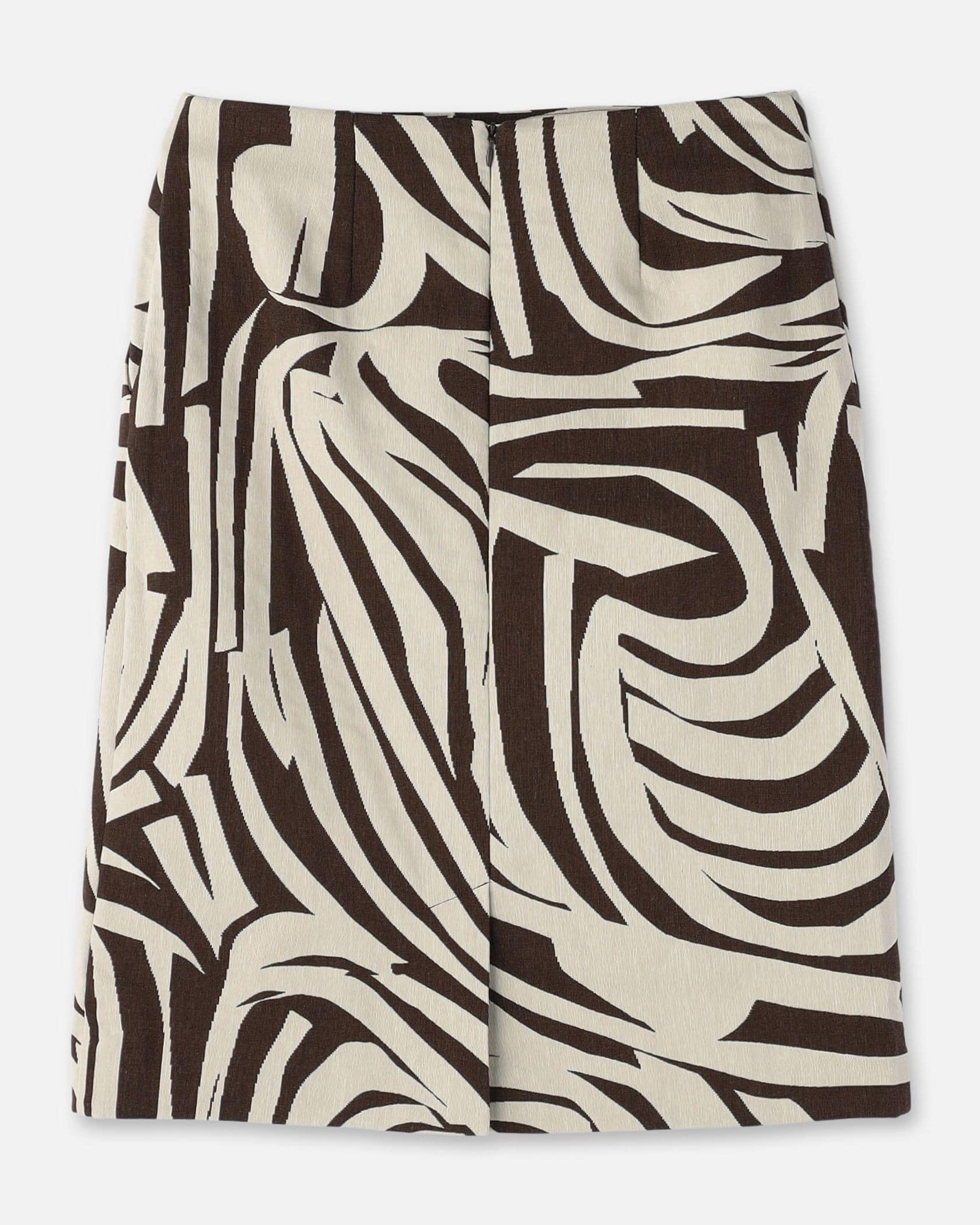 スパイシーでいてどこか優雅な総柄スカート。さりげなく広がるセミタイトなフォルムは、着痩せ効果も抜群です。トップスインして着こなせば、メリハリのあるスタイリングを楽しめそう。