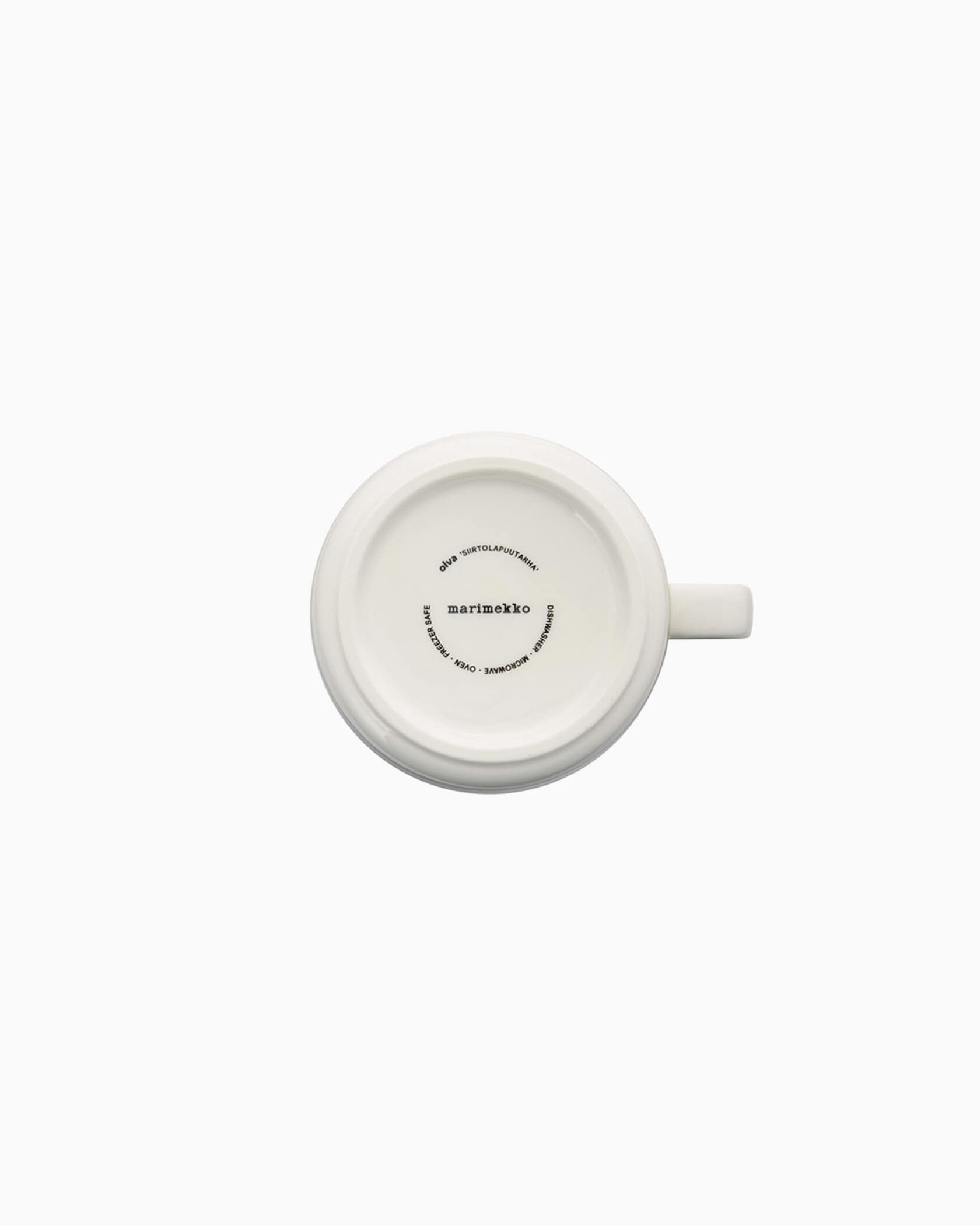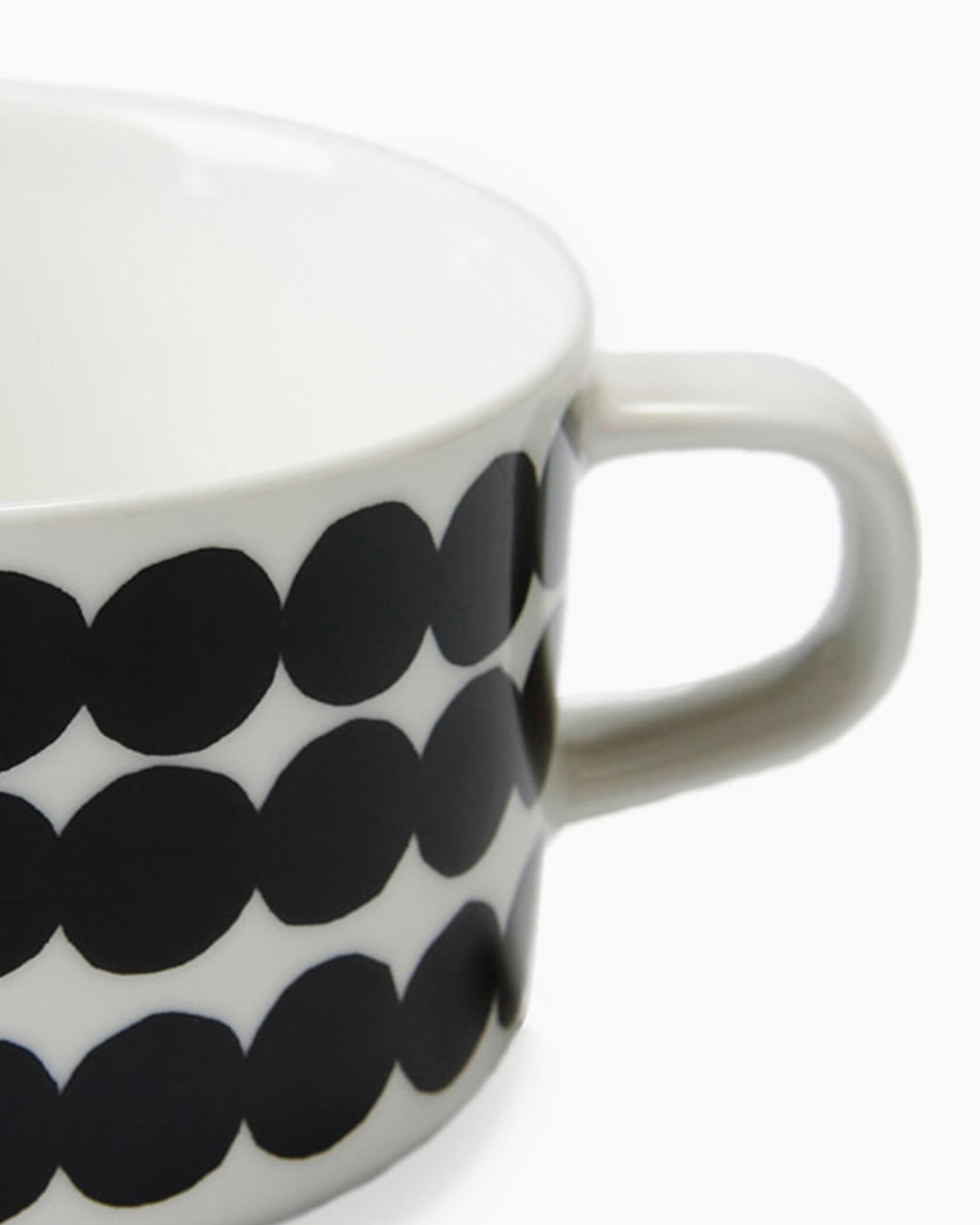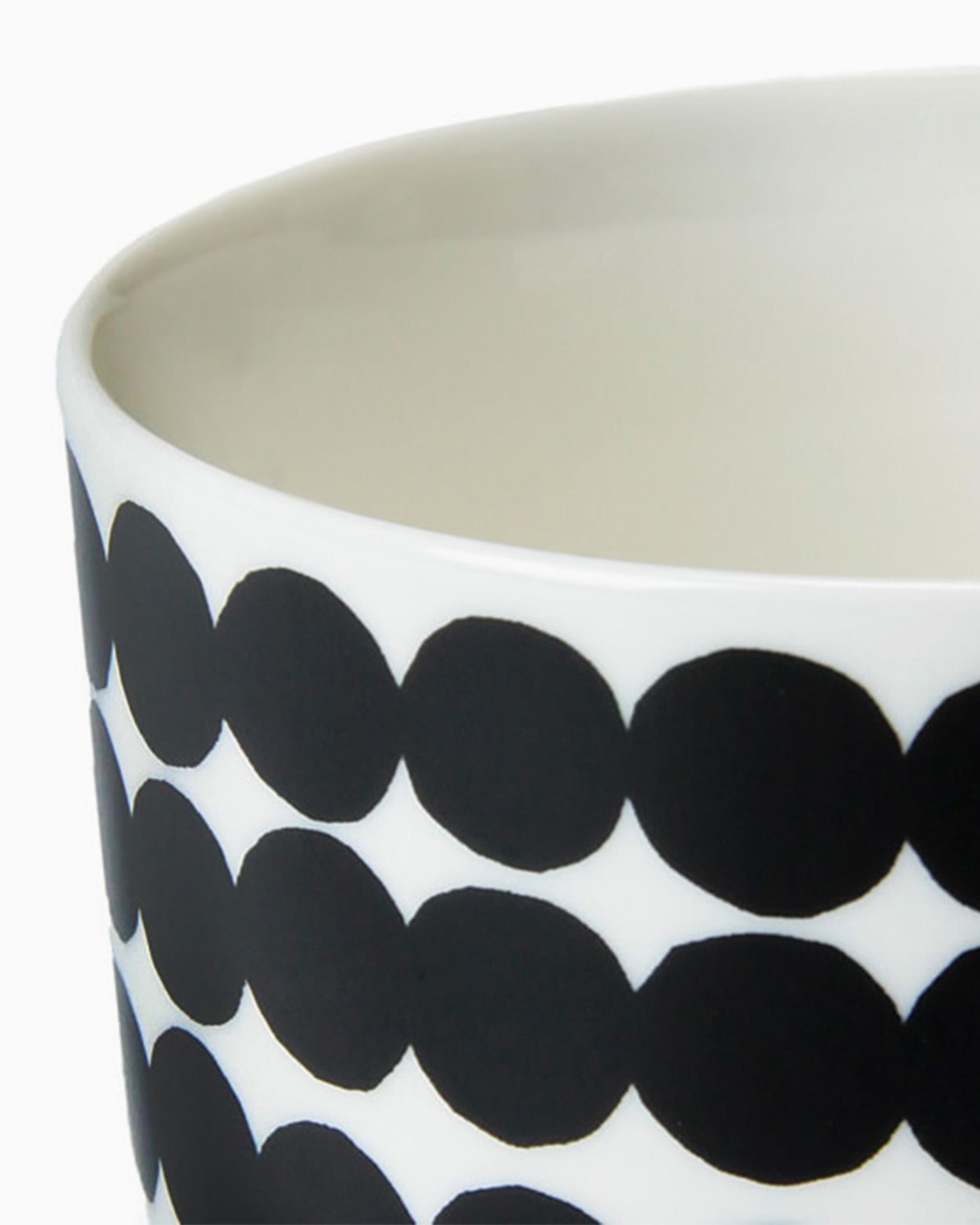 Maija Louekariデザインの人気テキスタイル「Rasymatto」市民菜園をモチーフにしたティーカップ。他の食器ともコーディネートしやすいモノトーンカラーだから、毎日の食卓でも活躍してくれます。