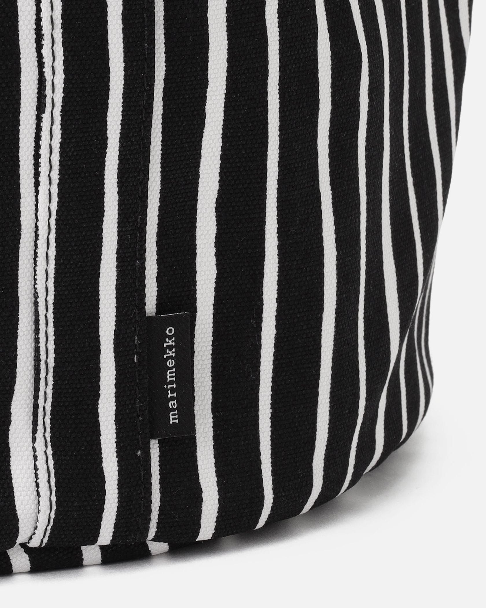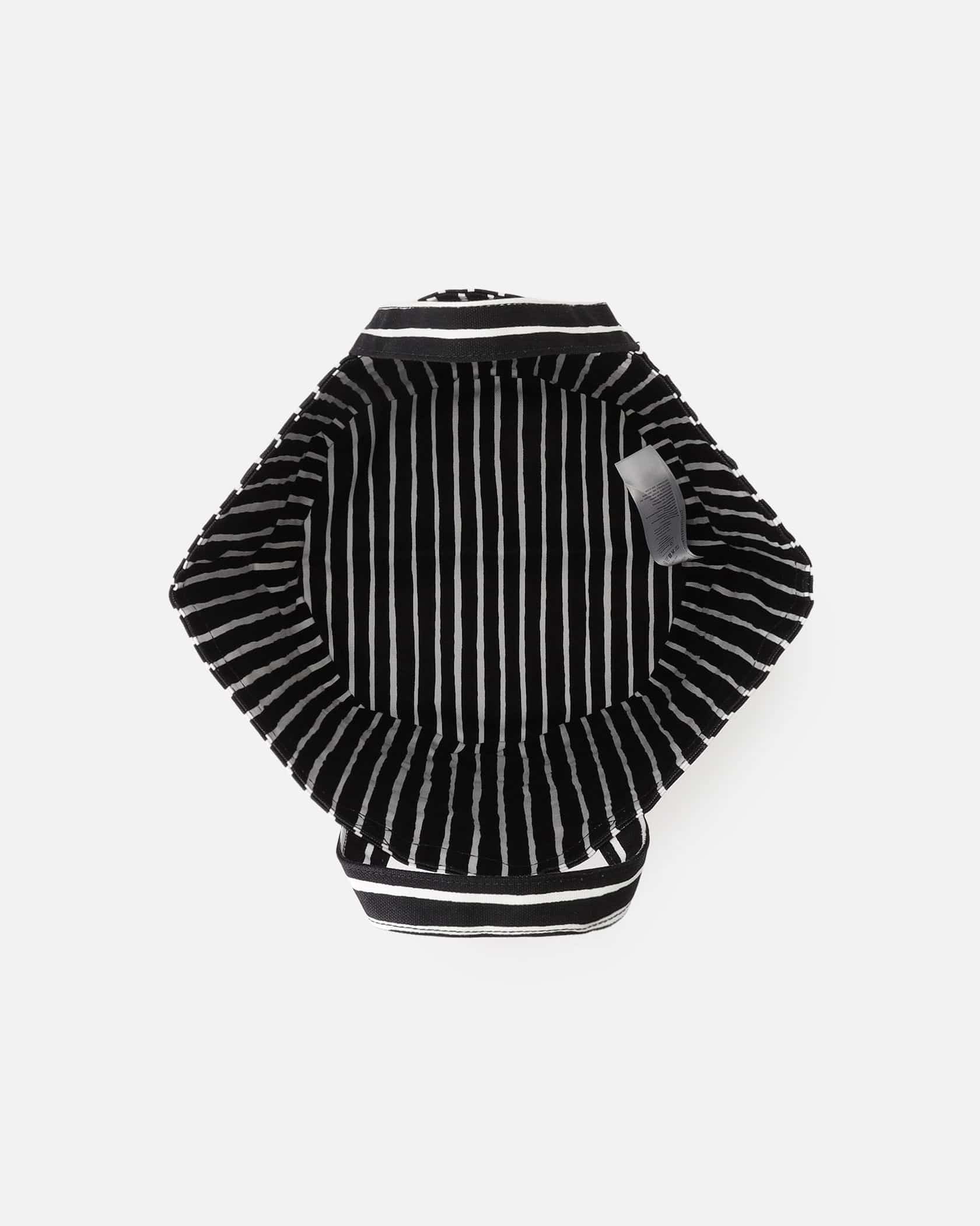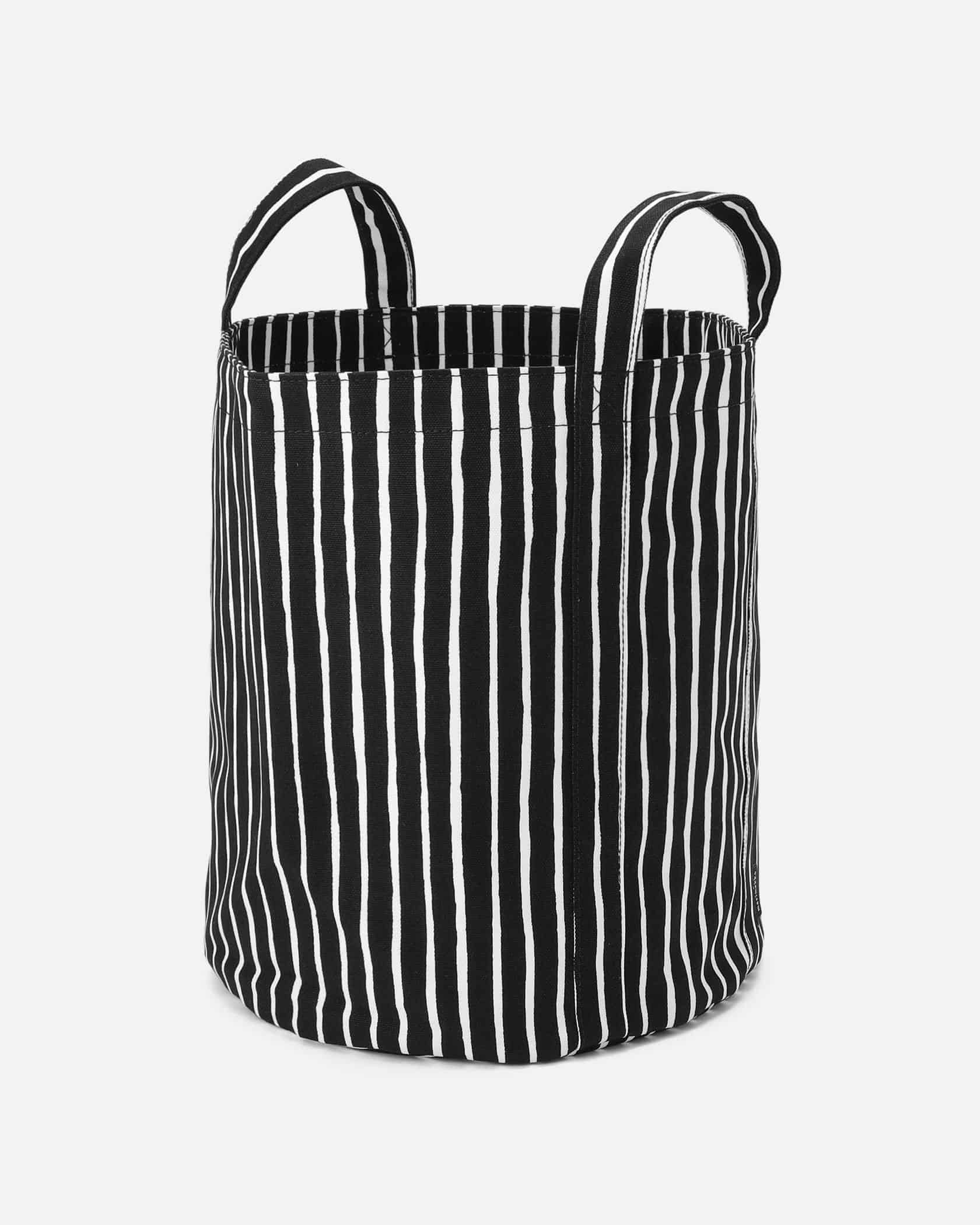 どんな装いにも似合う、スタイリッシュなストライプ柄のコンテナ。深さがあるため、見た目以上に収納力があるのがうれしい。ランドリーバッグとしてなど、お部屋にさりげなく置いておいても絵になるアイテムです。