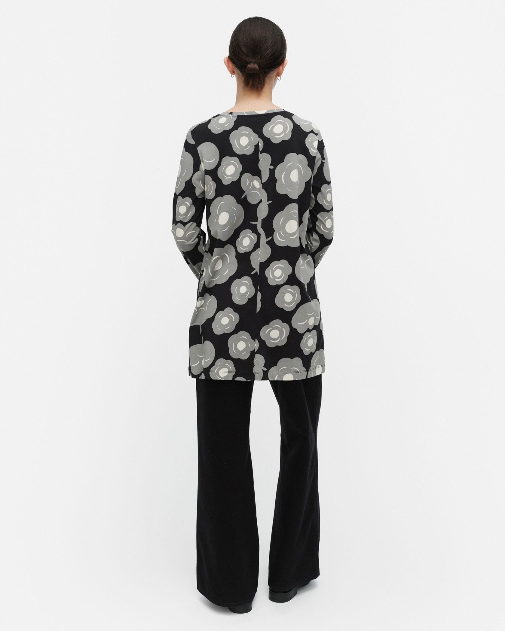 シックさとモード感を併せ持つチュニック。すとんと落ちるシルエットは、リラックスして過ごしたい日に最適。パンツとコーディネートしても女性らしさを保てるのも魅力です。