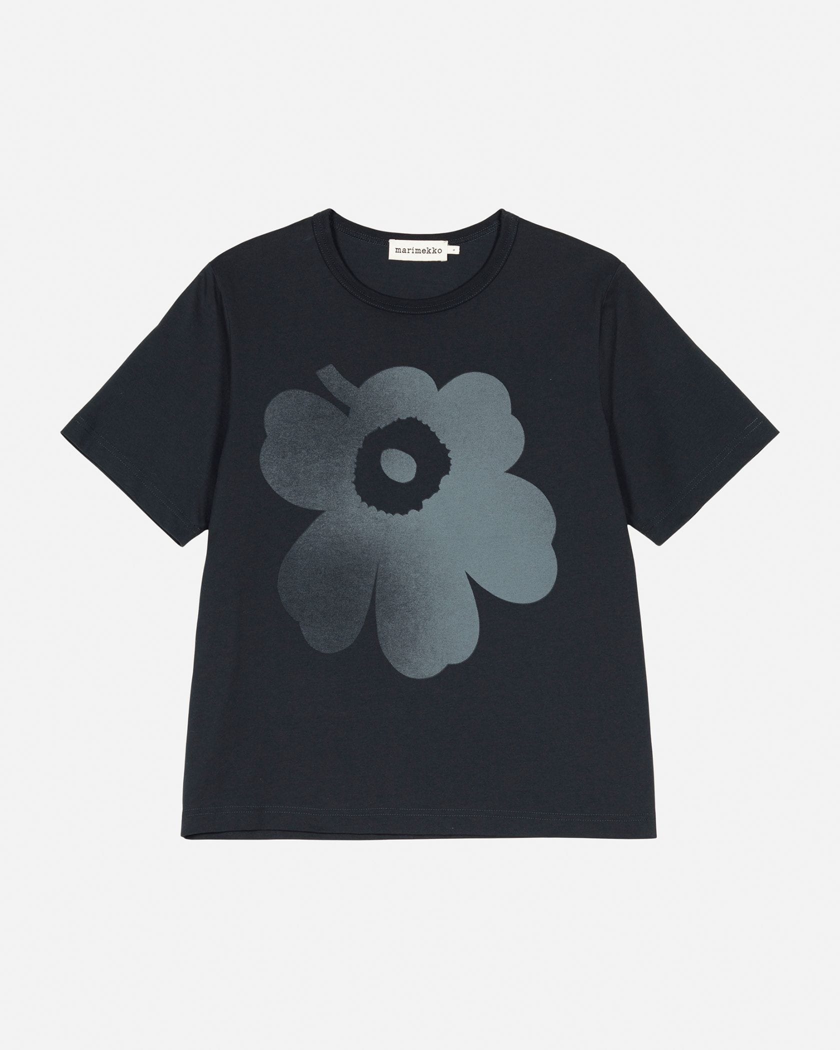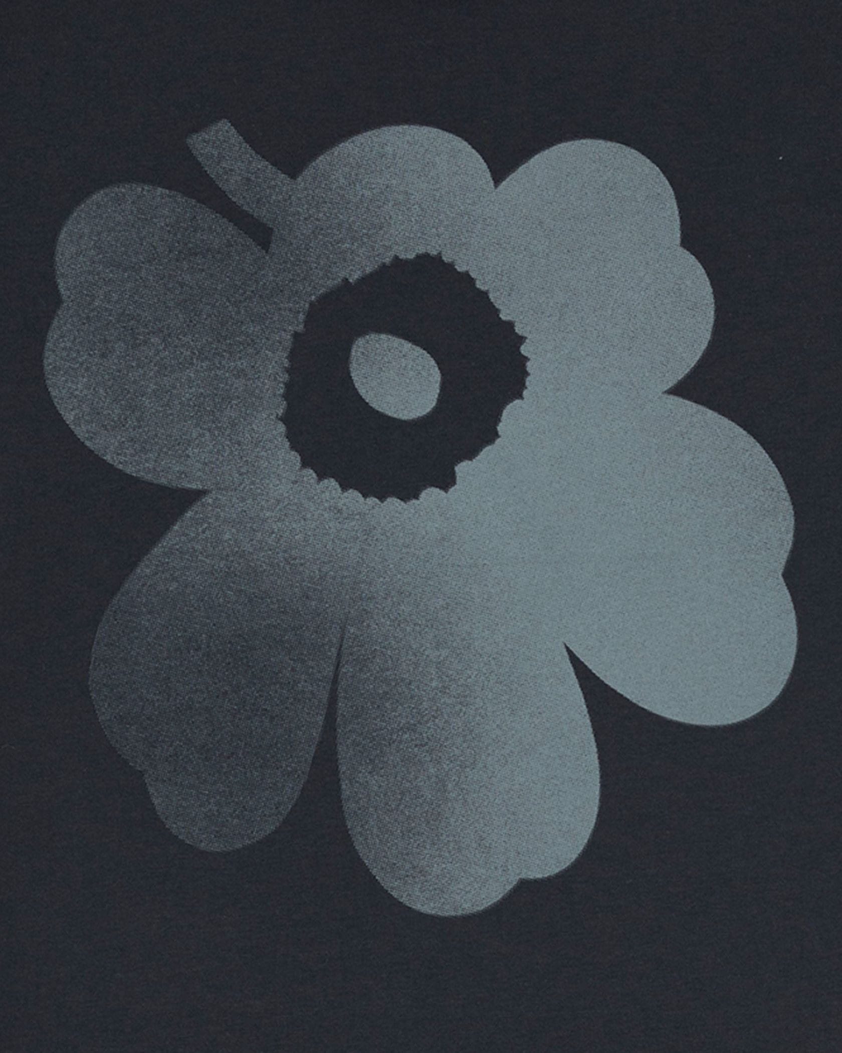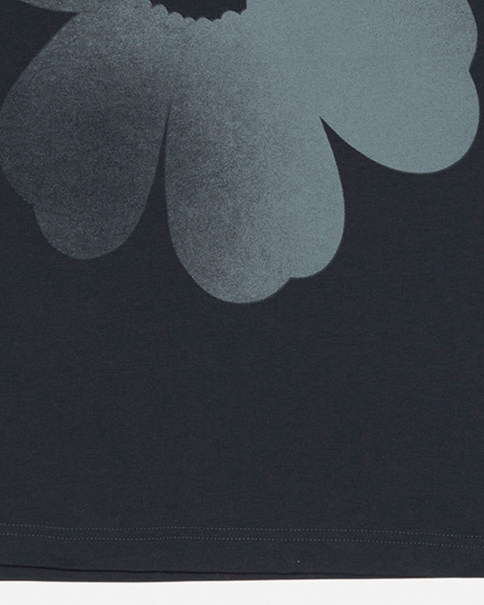 Unikkoのフラワーモチーフを大胆にプリントしたTシャツ。少しぼかしを加えることで、デザインにモダンなニュアンスをプラスしています。ゆったり着られるボックス型のリラックスフィットシルエットが、肩の力を程よく抜いた休日カジュアルを演出。裾はタックアウトでもバランスの良い着丈に調整しています。