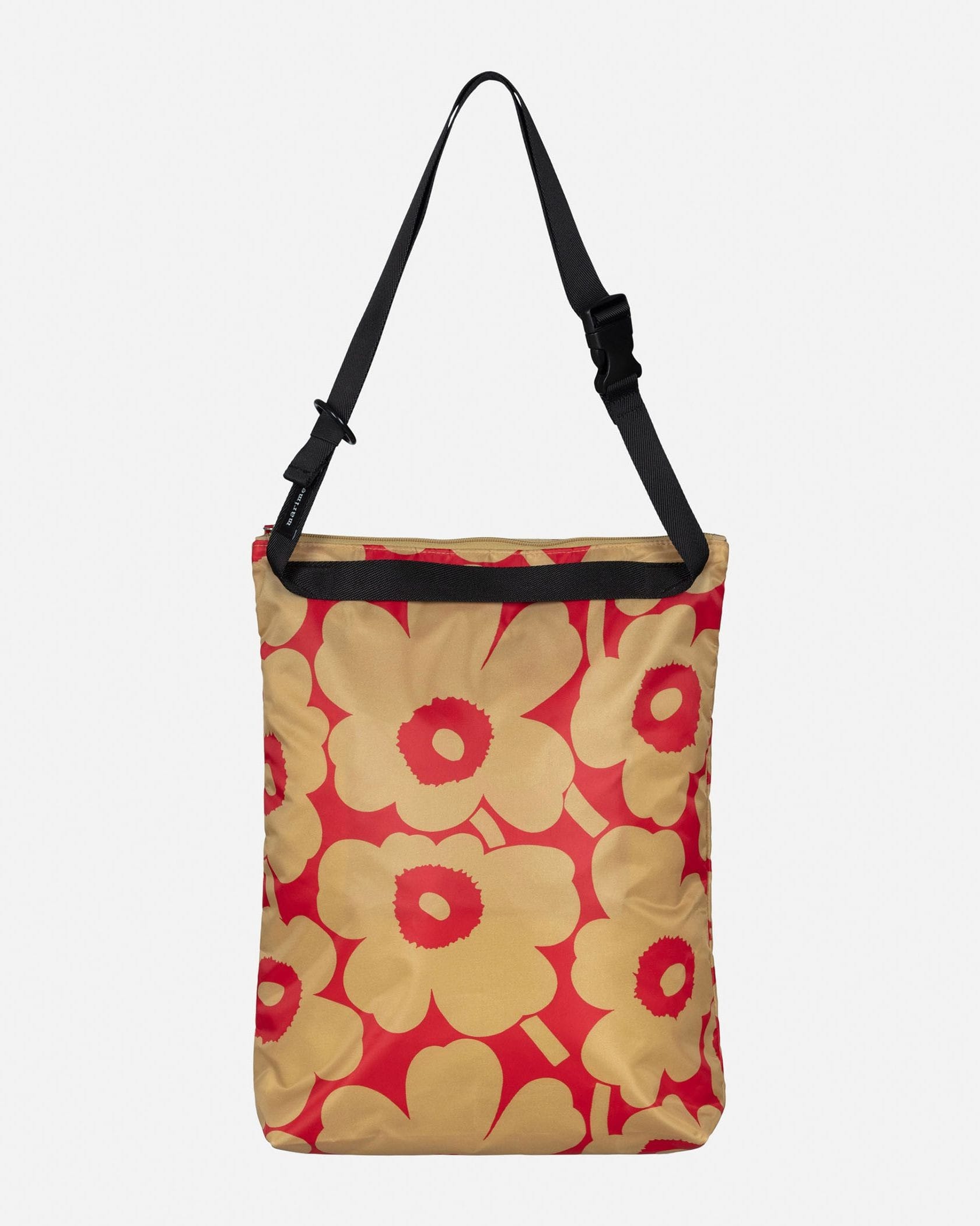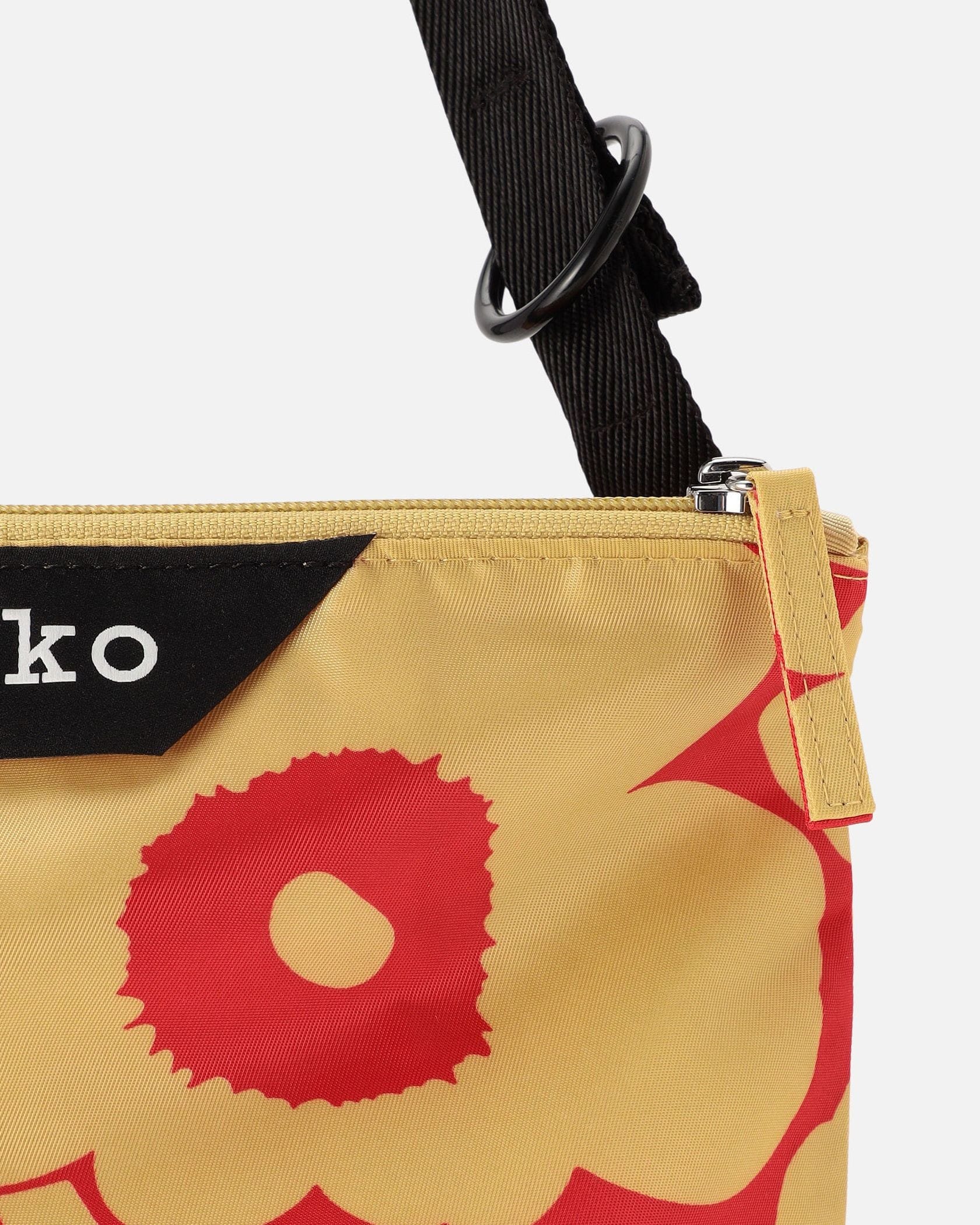 Marimekkoを代表するUnikko柄が華やかなデザインのワンストラップショルダーバッグ。フロントにあしらわれたロゴタグもスタイリッシュなデザインアクセント。便利なジッパー仕様、マチ付きで容量たっぷり、内側にはバッグ全体を折りたたんで収納できるスリップインポケット付きで機能性も抜群のアイテムです。