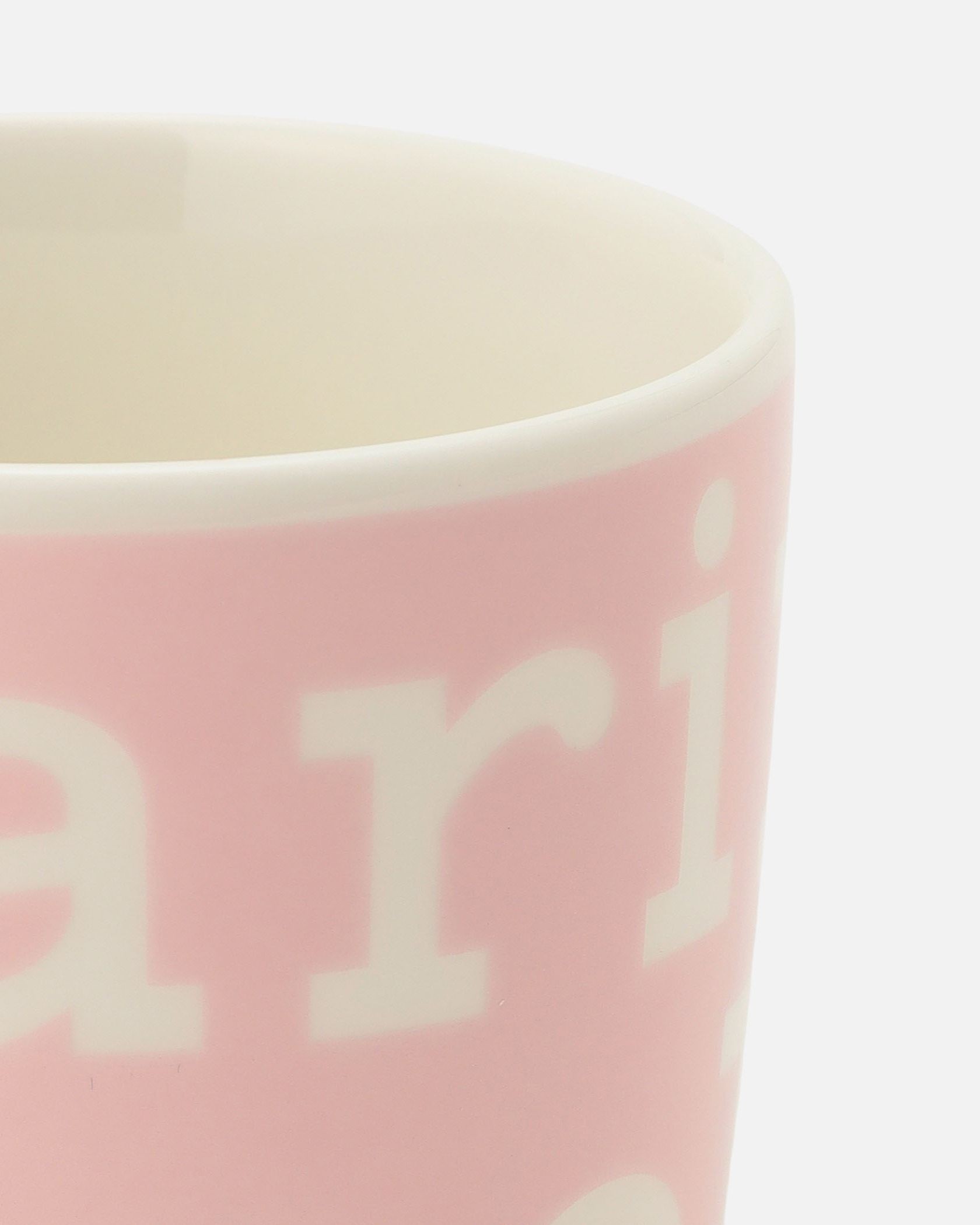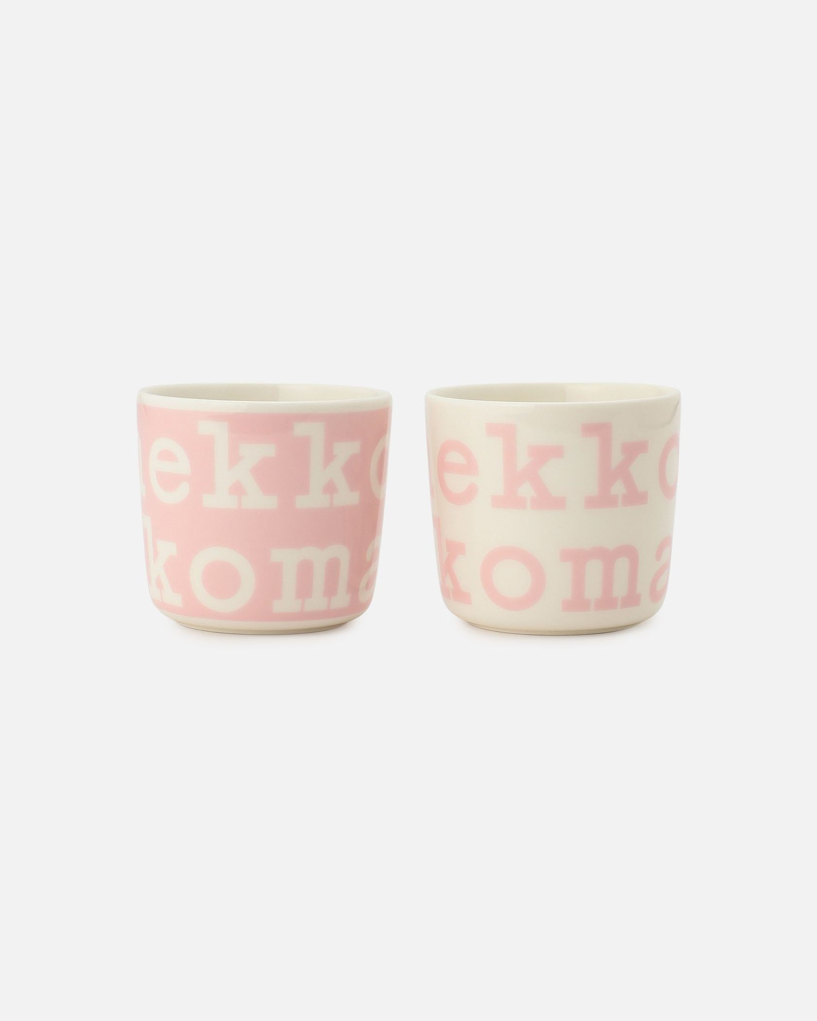 Marimekkoのロゴを全体にリピートしたデザインのマグカップ2個セット。色違いで組み合わせています。ハンドルのないすっきりとしたシルエットが特徴的。手になじみやすい小ぶりのサイズ感もポイントで、コーヒーやお茶のほか様々な用途にお使いいただけます。ギフトとしてもおすすめのボックス入りです。
