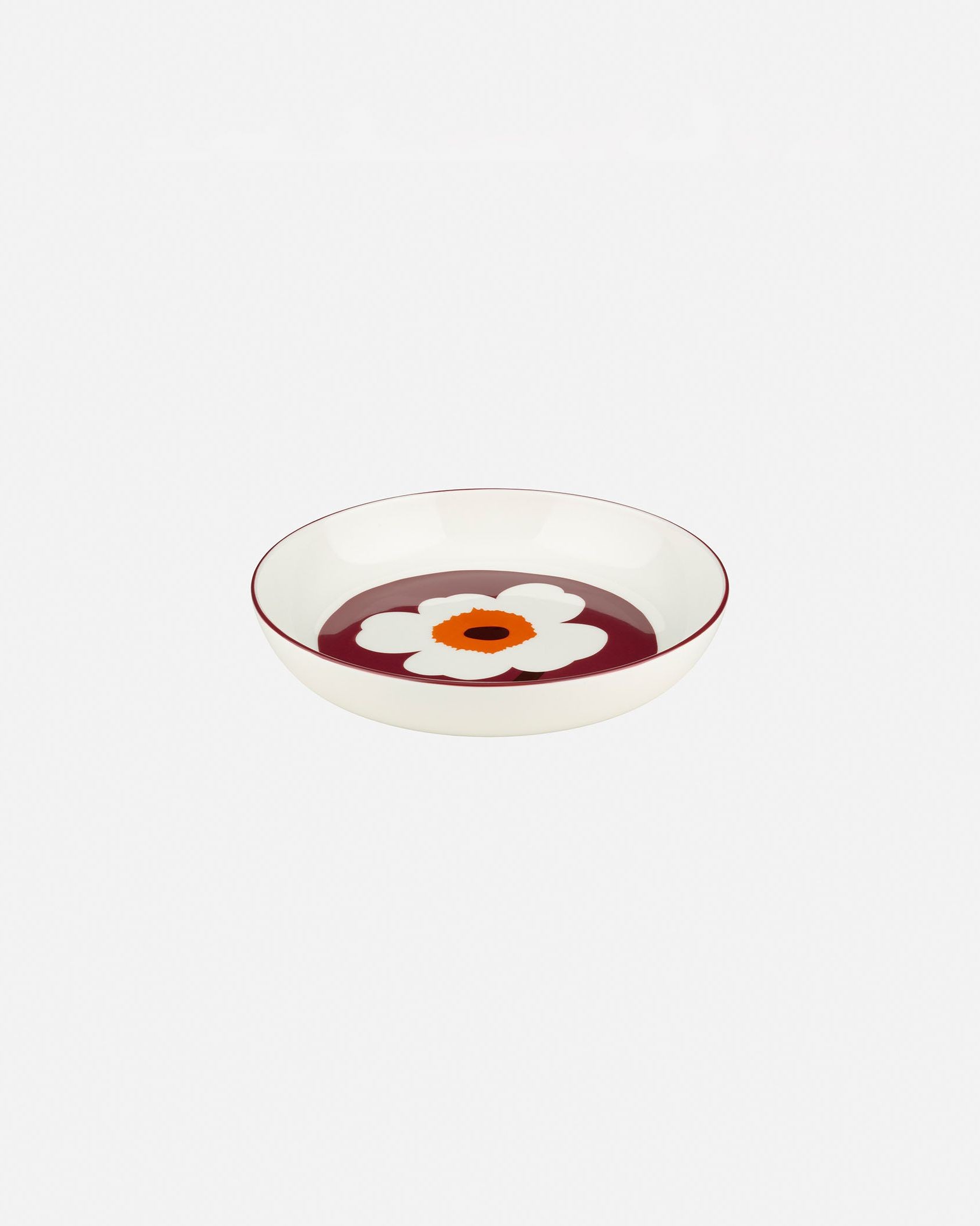 Marimekkoを代表するUnikko柄モチーフが華やかなデザインのプレート(20.5cm)。深さがあり使い勝手抜群のフォルム。センター部分と同色の縁取りもスタイリッシュなデザインアクセント。食洗機、電子レンジ、オーブン、冷凍で使用出来、実用面も抜群。テーブルコーディネートが華やかになるアイテムです。