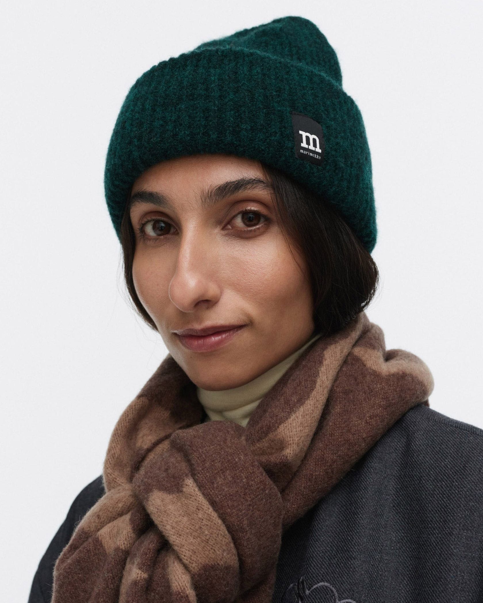 トレンドに左右されない、シンプル&ベーシックなニットビーニーです。ツンと角が立ったような長めのタイプで、折り返し部分にはアクセントのロゴラベルがあしらわれています。耳元まで目深にかぶれば、耳当て要らずに。Marimekkoならではの柄物ウェアにも合わせやすい一品です。