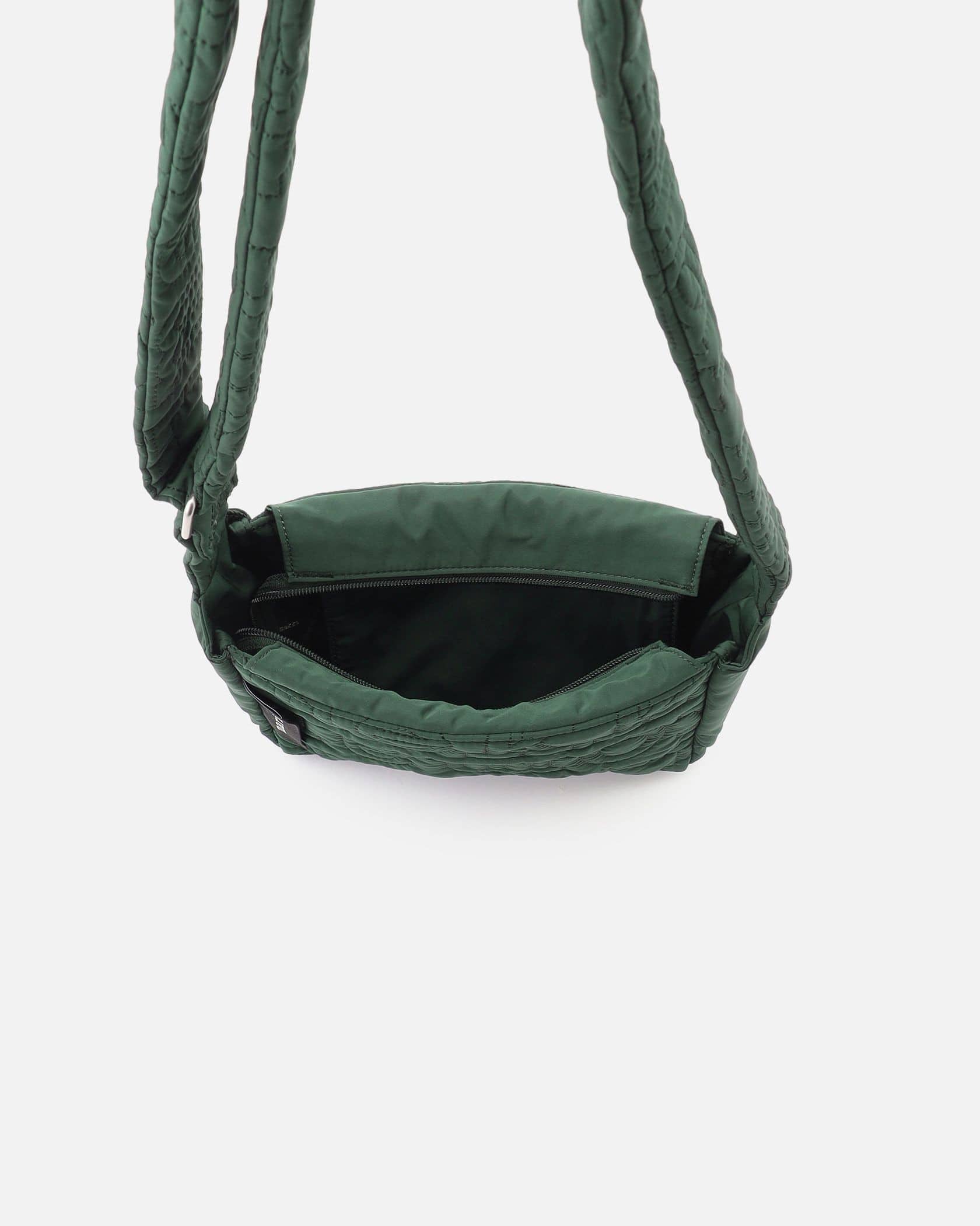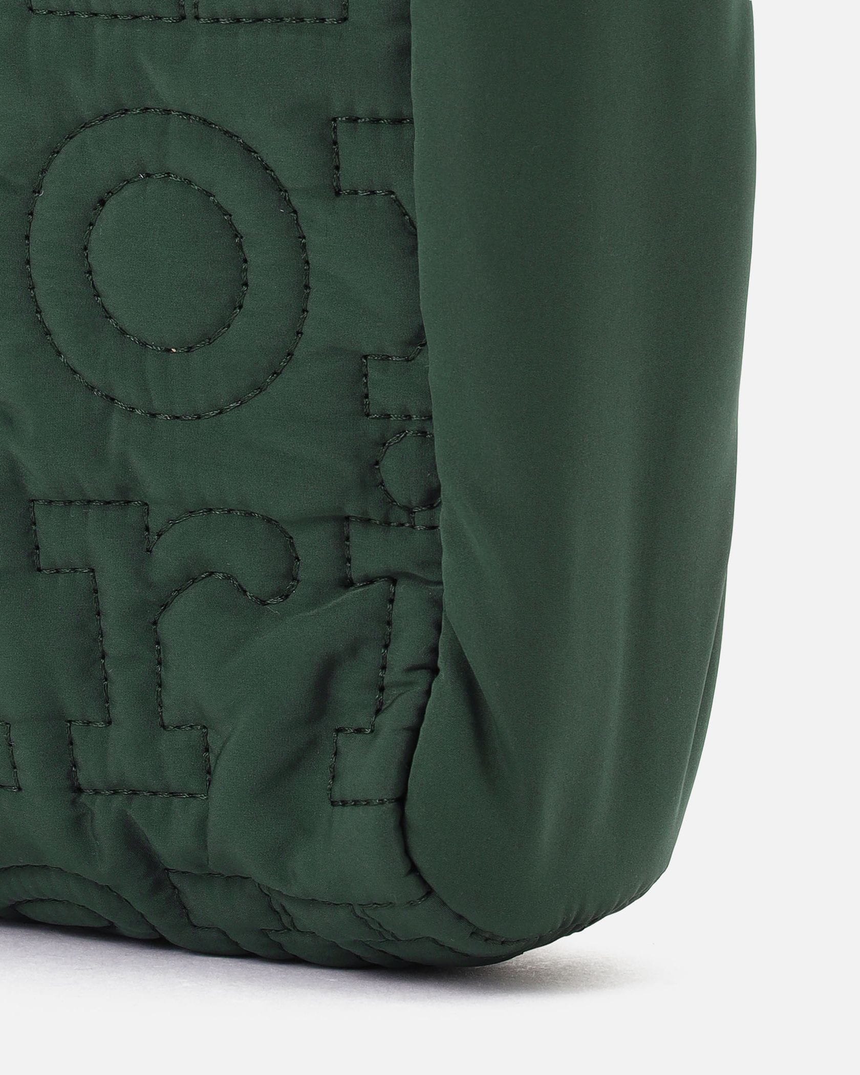 一目でそれとわかる、モダンなレタードロゴをキルティングで表現した、パファーな素材感のショルダーバッグ。コンパクトながらもしっかりとしたマチがあり、収納力の高さも満点です。斜め掛けできるストラップもキルティングになっており、肩に食い込みにくい仕様。旅行やレジャーにも活躍するアイテムです。