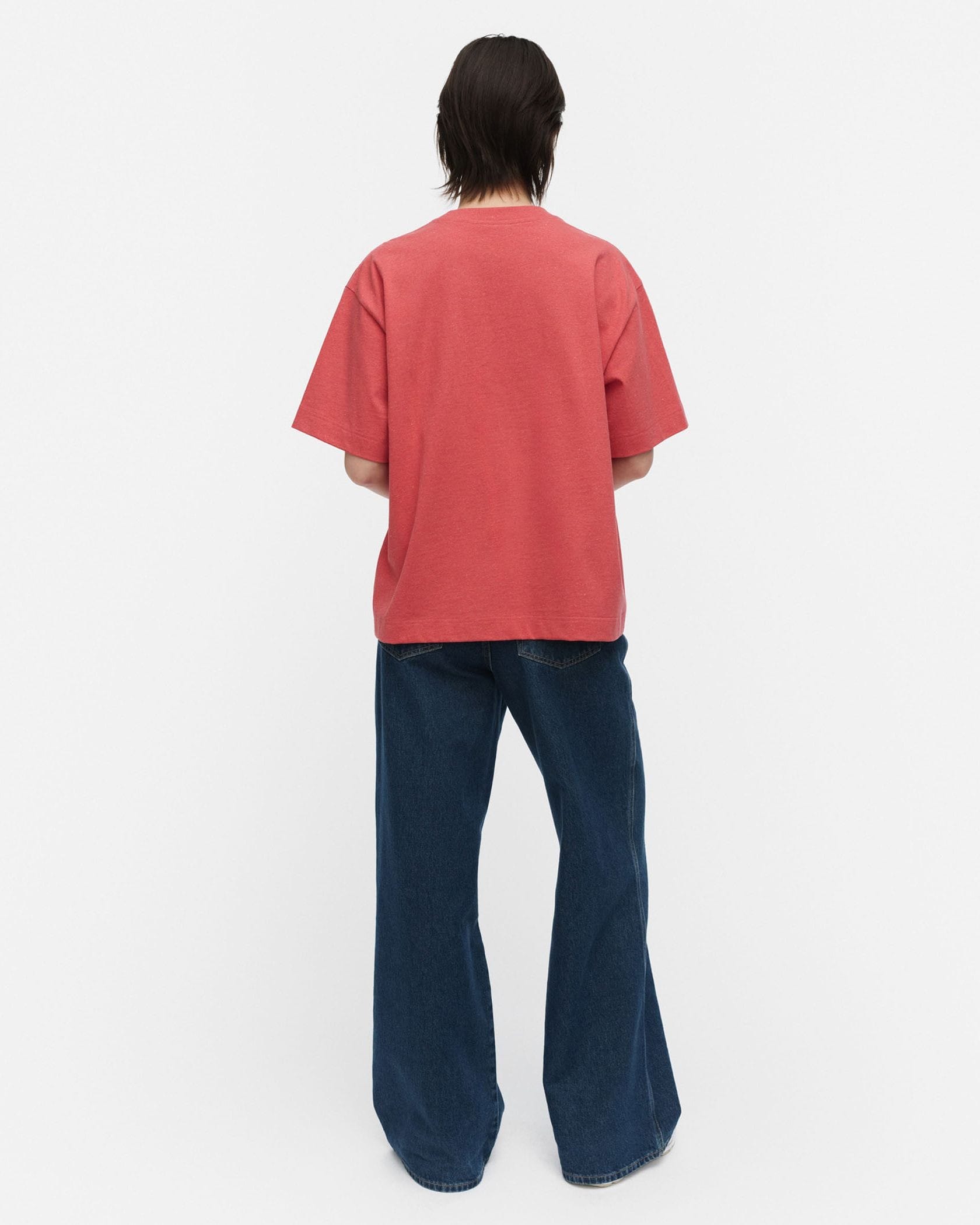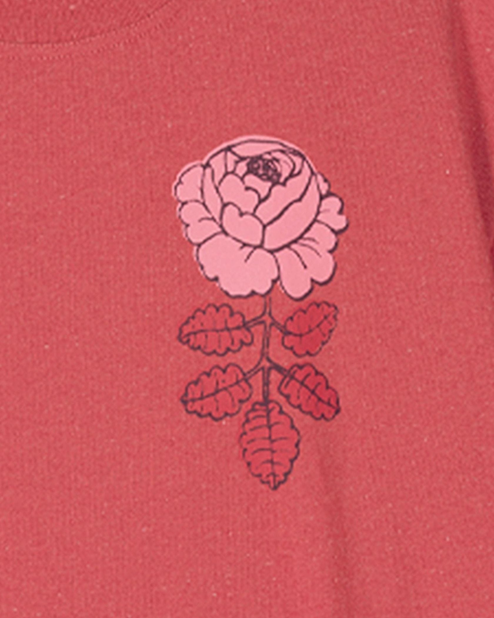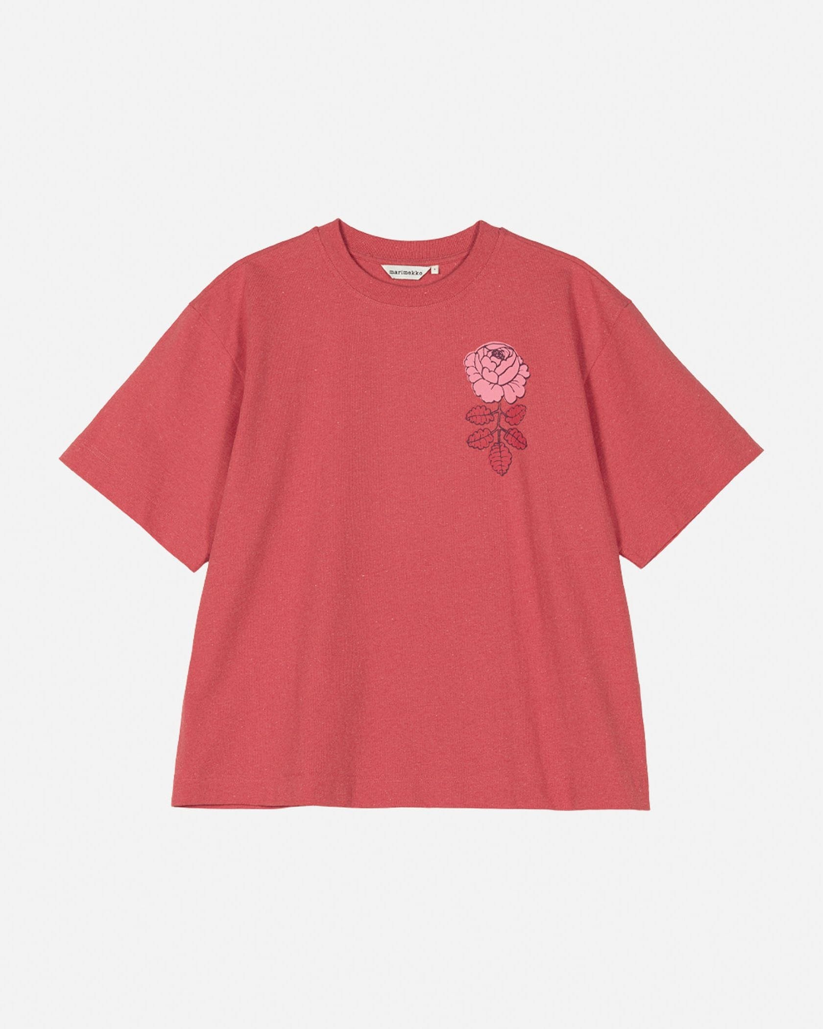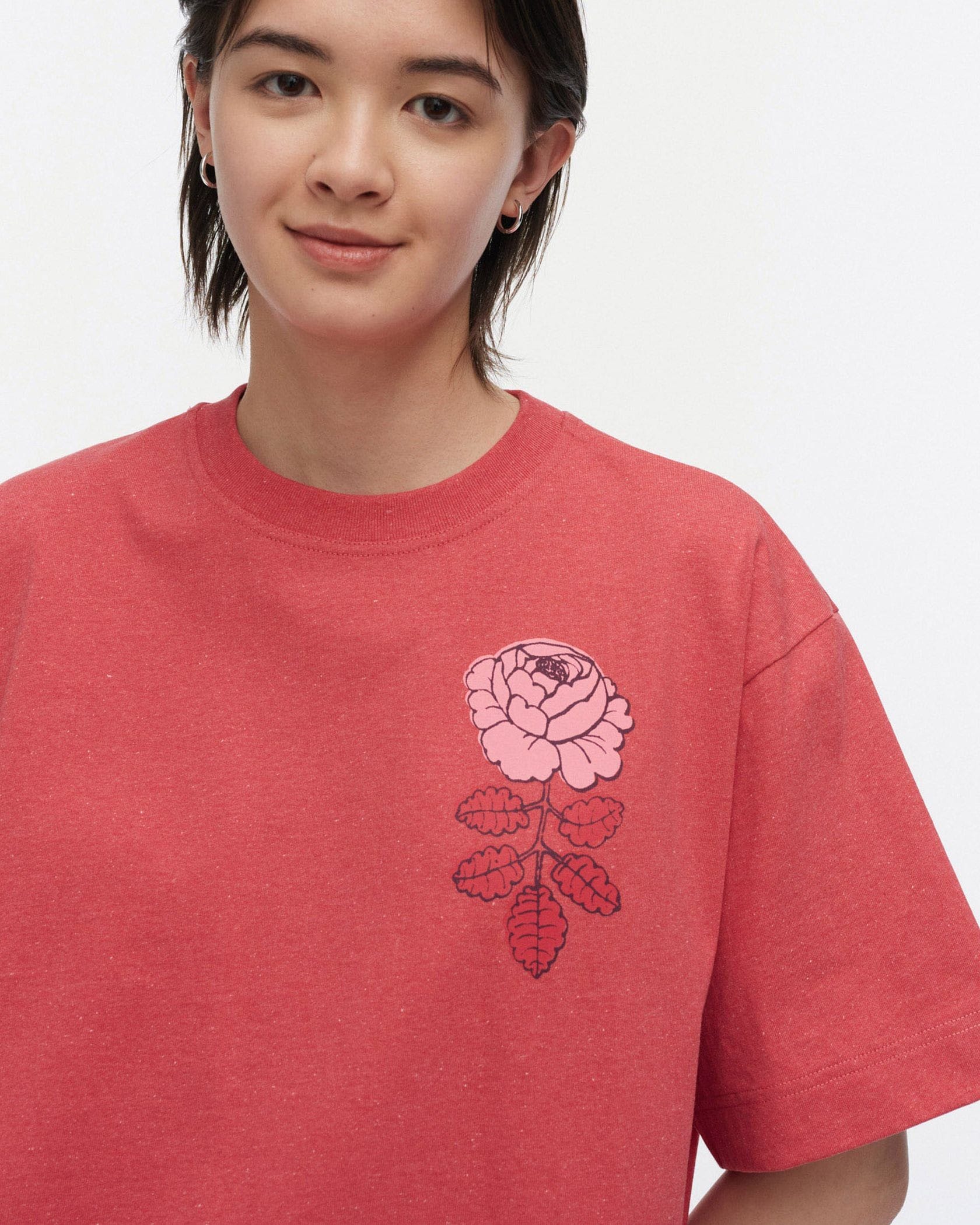 ワンポイントのバラ柄が着こなしを引き立たせるTシャツ。シンプルなようで存在感のある装いを楽しみたい日に重宝しそう。すっきりした着丈は、タックインしなくてもスマートに着こなせます。