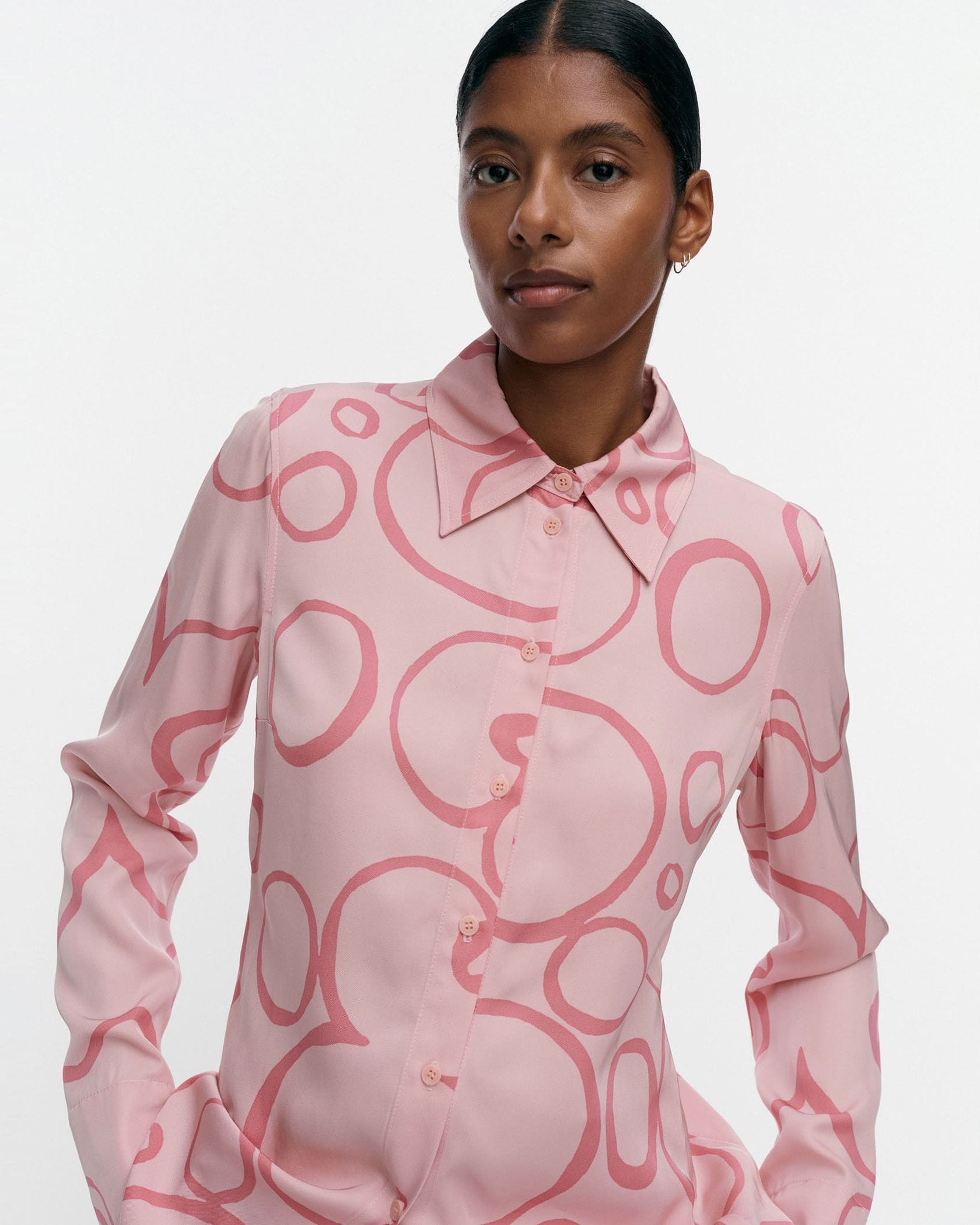 Marimekkoからオアシスを意味するKeidas(ケイダス)柄の長袖シャツが登場です。存在感たっぷりなプリント柄で、1枚着はもちろんインナーとしてもお目立ち度抜群に着られます。同柄のパンツをあわせたセットアップコーデもおすすめで、カジュアルにもきれいめにも使える着まわしアイテムです。
