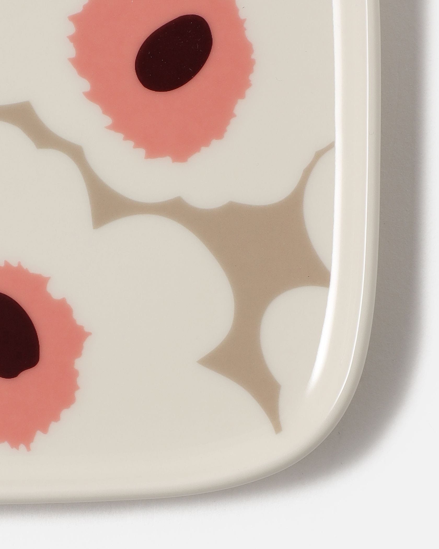 Marimekkoの人気シリーズ、Unikko(ウニッコ)からプレートの登場です。珍しいスクエア型は小さめサイズで取り分け皿にもぴったり。同じ柄のアイテムとシリーズでそろえるのもおすすめ、誕生日や記念日の贈り物としても喜ばれるアイテムです。