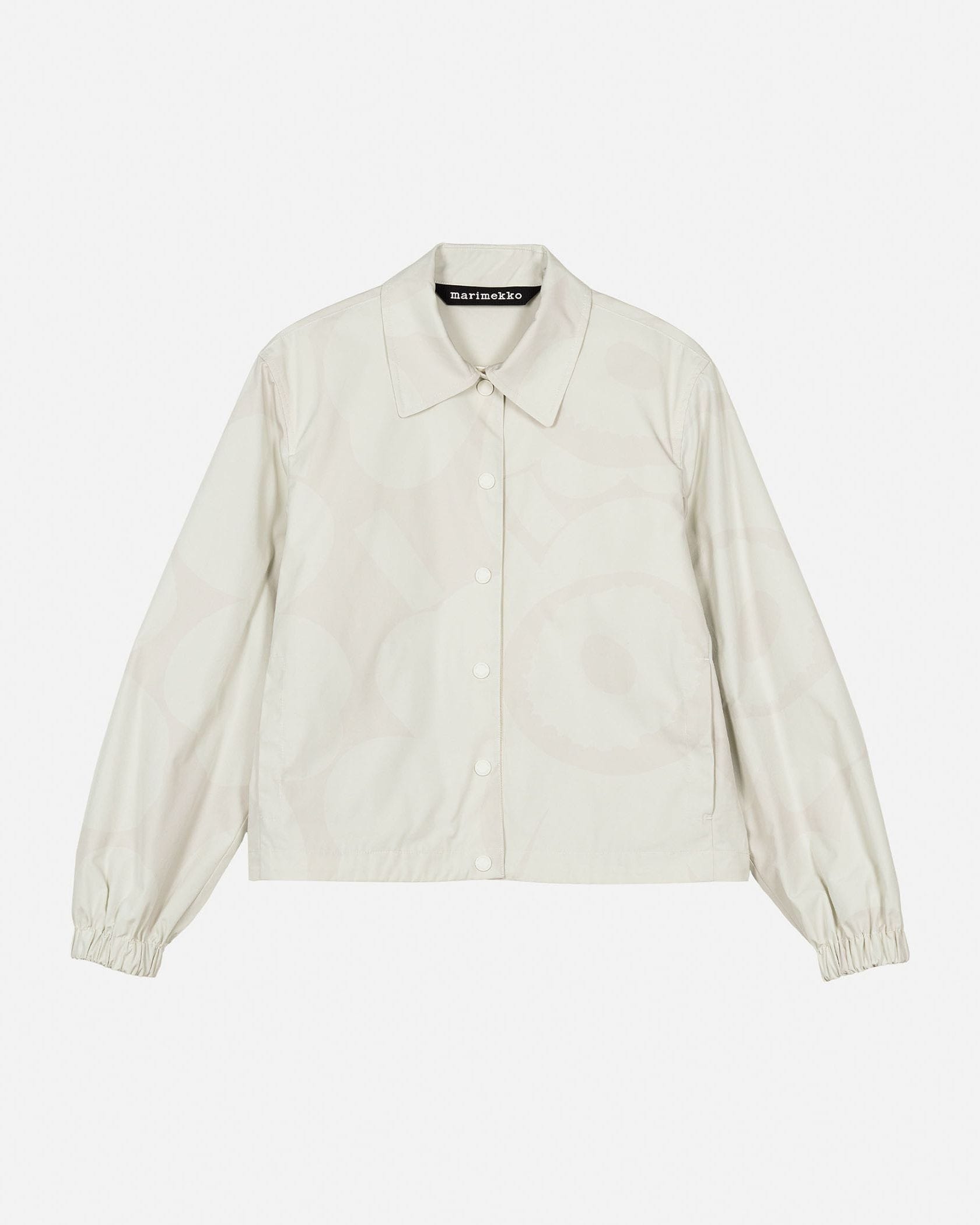 unikko柄のモチーフを大きくプリントしたショート丈コート。春夏シーズンにぴったりな軽やかなコットン生地。ゆったりとしたフィット感がモダンなシルエット。袖口は、クシュっとしたゴムギャザーが愛らしいデザインアクセント。大きなフラワーモチーフながら、主張しすぎないカラートーンで様々な着こなしにマッチします。