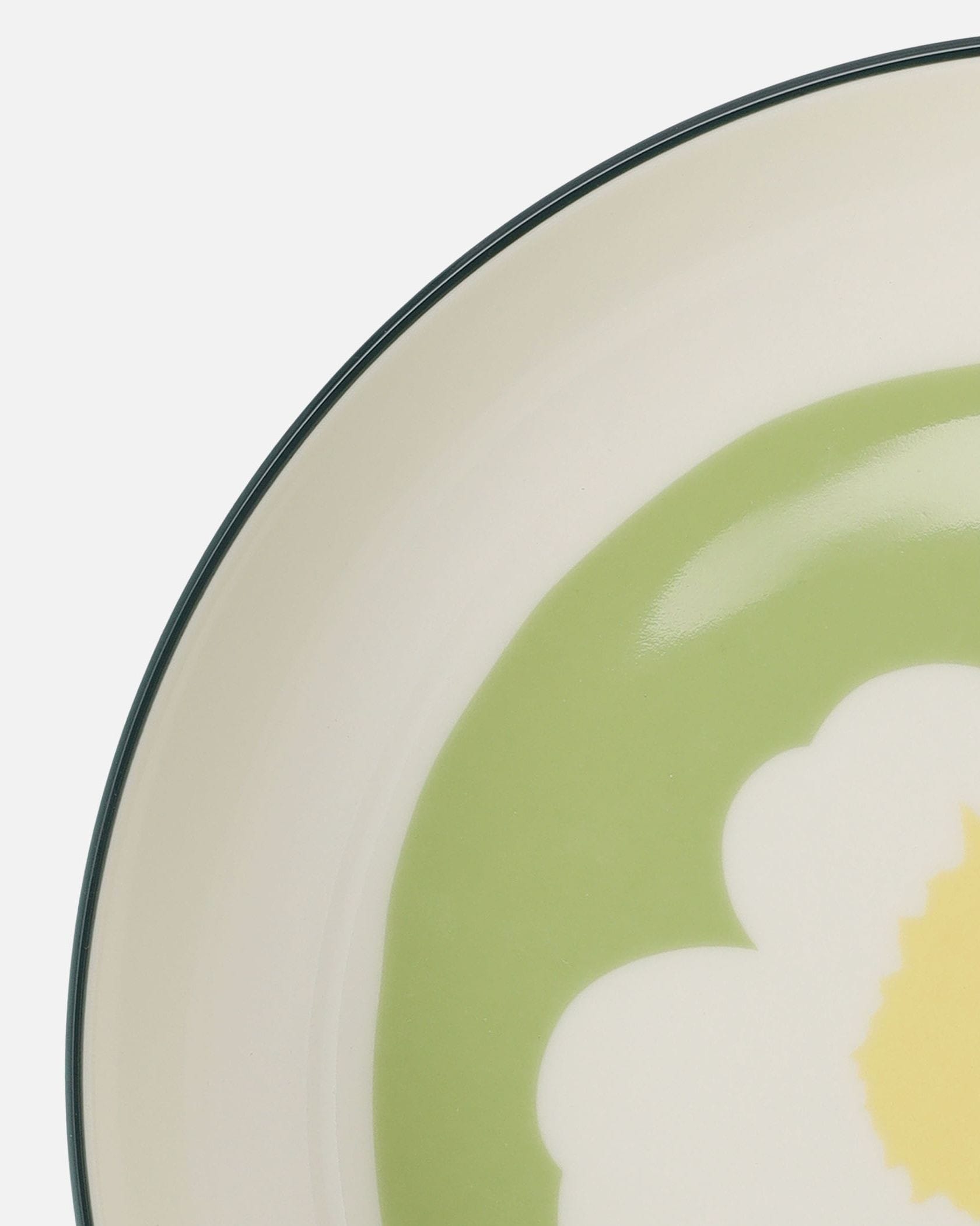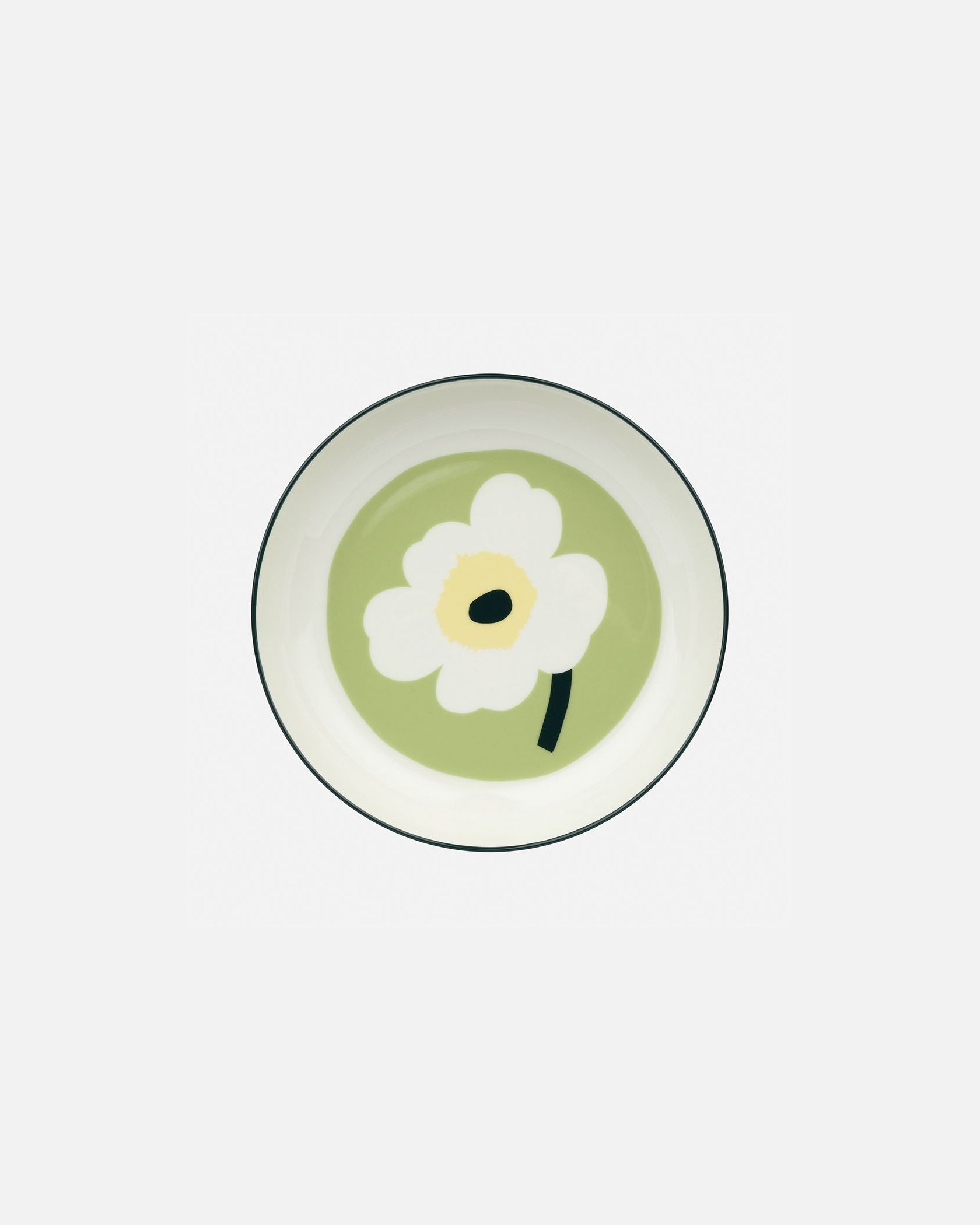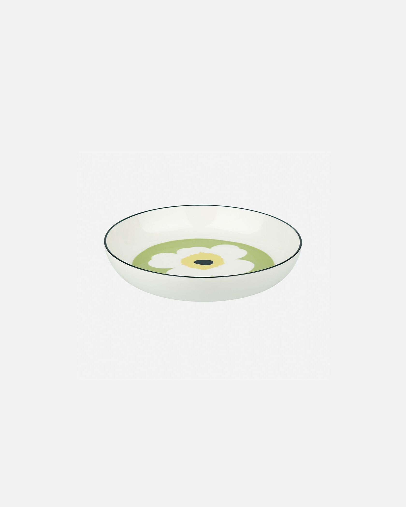 どこかレトロなムードが可愛いUnikko柄プレート。深さがあるため、たっぷり盛り付けたいときや汁気のある料理にも対応します。置くだけで食卓が明るく華やぐ一枚。