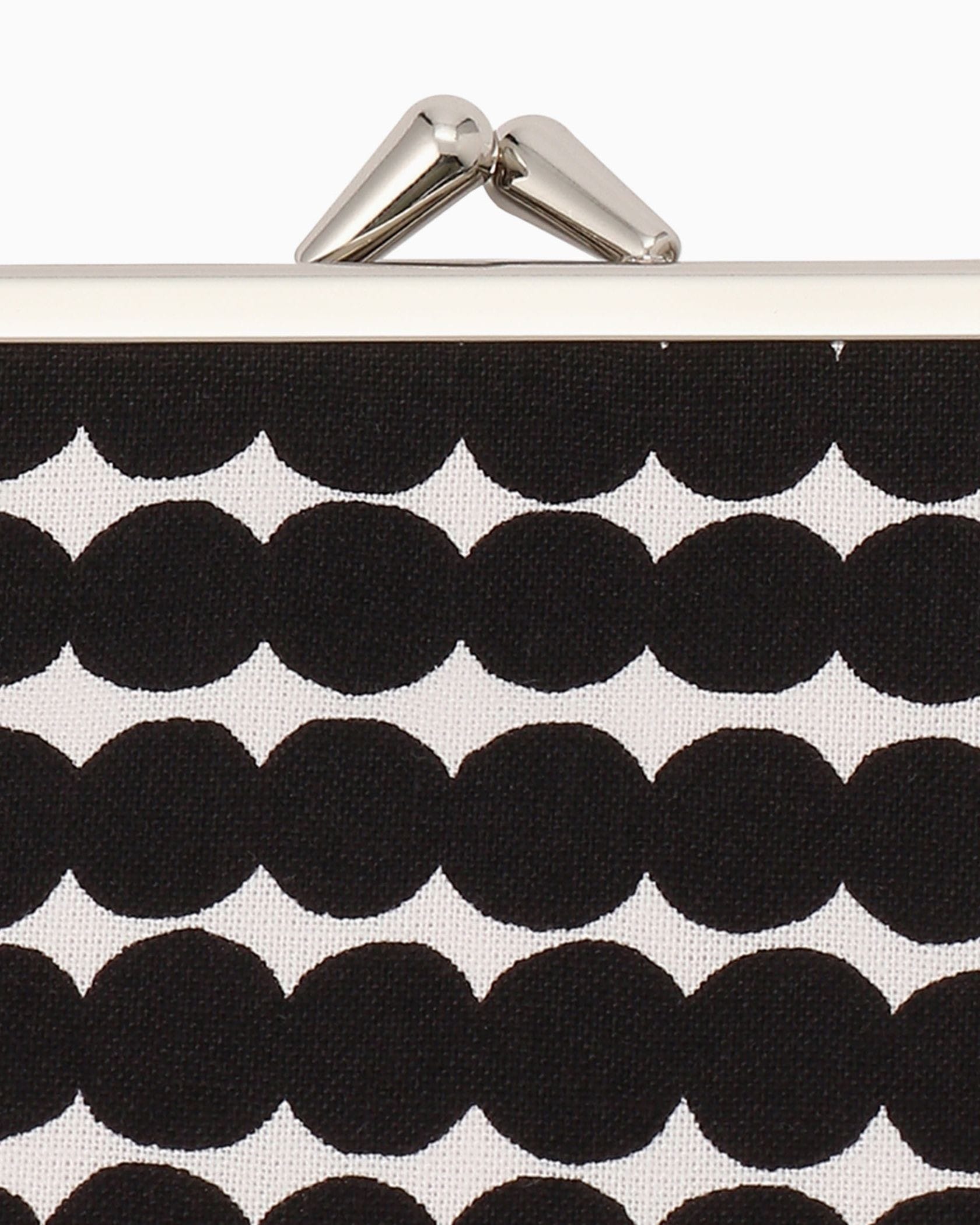 “使い込まれたラグ”を意味する「Rasymatto」テキスタイルのポーチ。横長のフォルムはステーショナリーやメイクアイテムなどをまとめるのに最適。どこかレトロなムード漂うがま口デザイン。間口が大きく開くため中身が見渡しやすいのもポイント。